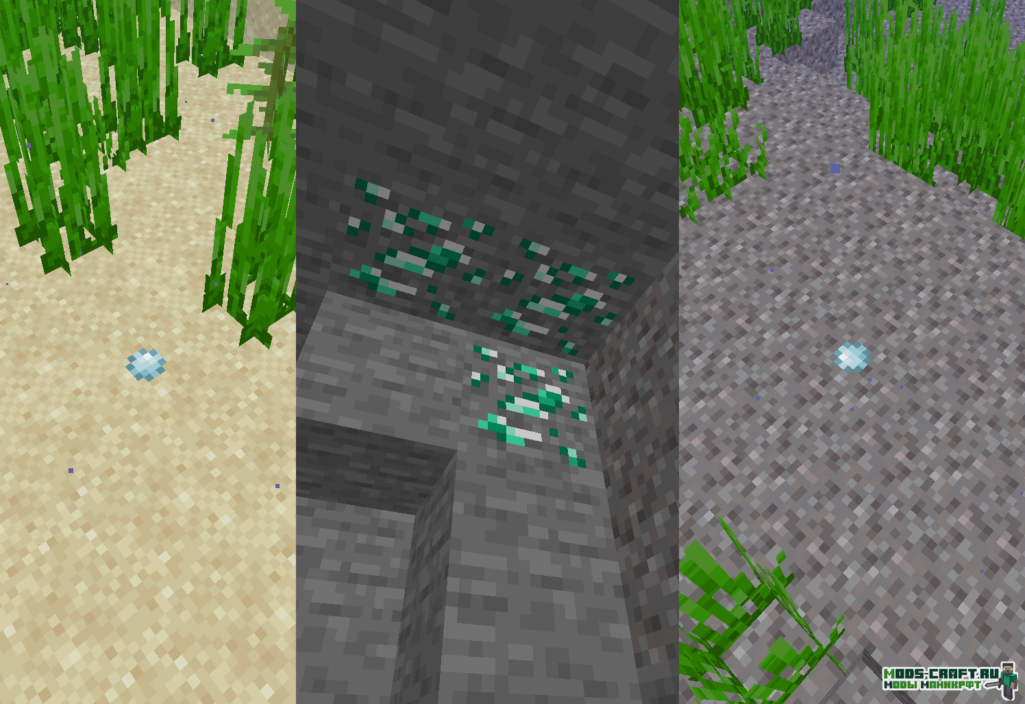 Мод добавит 2 новых минера в Майнкрафт, которые можно найти в океанах: жемчужина и фосфофиллит. Жемчужину можно найти в дне любого океана и изготовить ожерелье, а также использоваться для упрочнения Фосфофиллитовых инструментов и брони. Фосфофиллит спавнится очень редко (как алмазы) в холодных океанах и может использоваться для создания брони и инструментов.