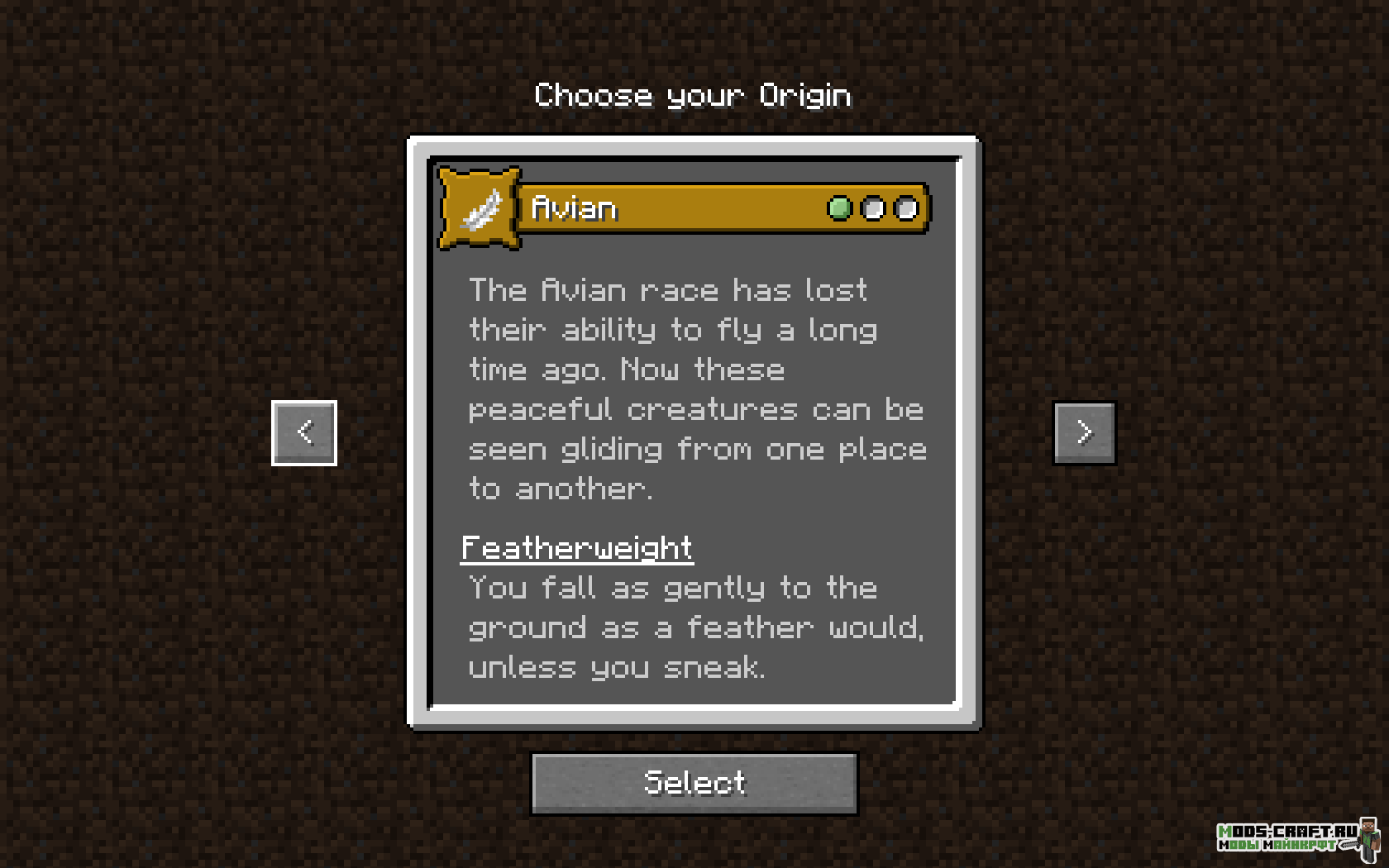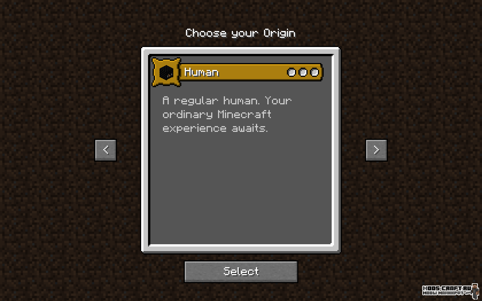 Очень интересная модификация, дающая возможность при создании новой игры выбрать ваше происхождение — каждое из них даст какие-то бафы и отрицательные стороны. Если вы хотите остаться самим собой, то выберите Human.