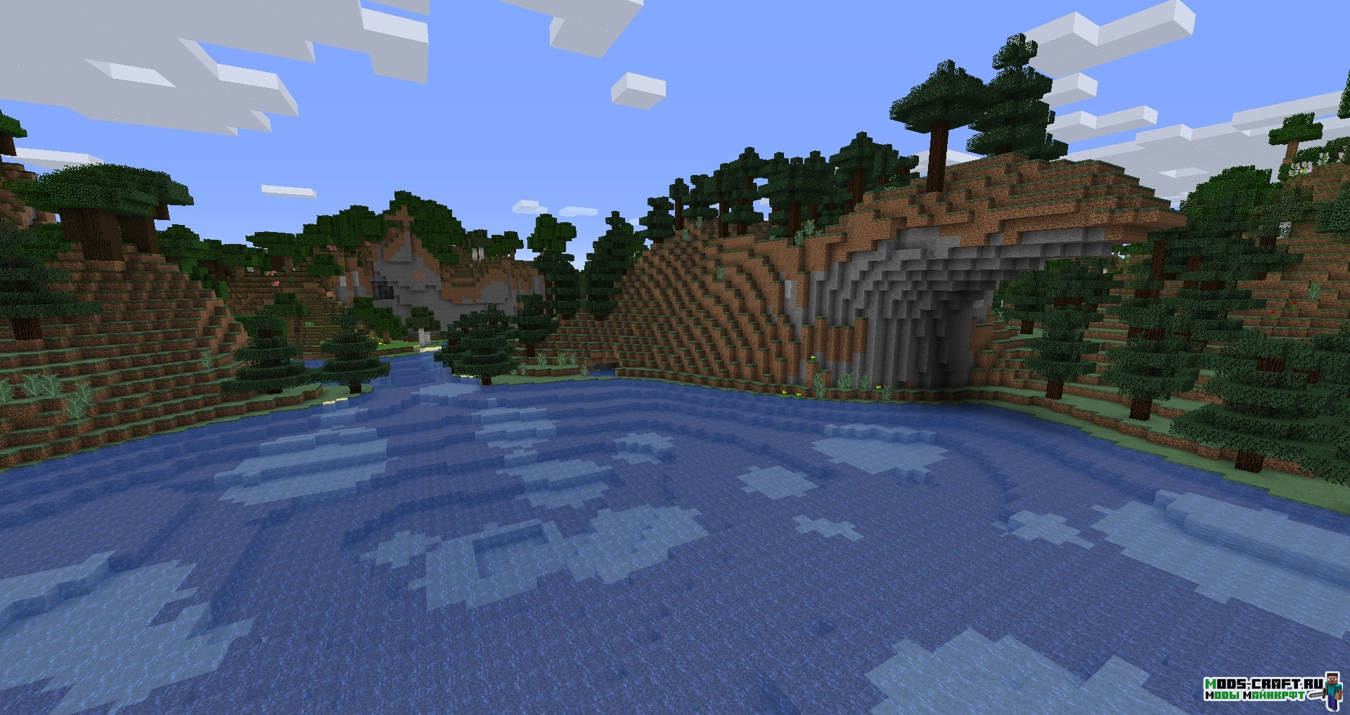 Overworld Two добавляет новый тип генерации мира, который будет схож с ванильным, но его основное отличие — быстрая прогрузка. Вы получите на 50% сокращения времени прогрузки, за счёт некоторого изменения в ландшафте, это применяется также и для нижнего мира. Чтобы использовать новую генерацию, выберите при создании тип мира «overworld_two«.