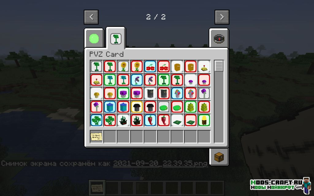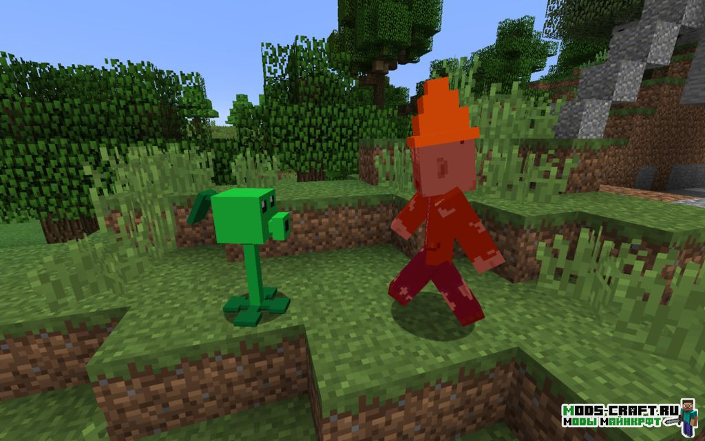 Данный мод интегрирует механику игры Plants vs Zombies прямо в Майнкрафт, добавляя оборонительные растения и зомби. Игрокам нужно собирать эссенции, семена растений и руду, чтобы создавать карты растений. При помощи таких карт собственно и вызываются новые растения для противостоянию от волн зомби.