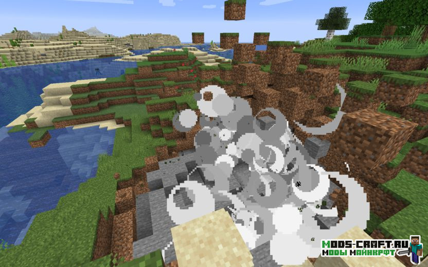Realistic Explosion Physics — реалистичный мод, добавляющий физику взрывающимся блокам. Теперь от взрыва динамита блоки будут разлетаться в направлении от взрыва со скоростью, зависящей от близости к взрыву и его силе. При приземлении они будут мгновенно размещены на новом месте падения.