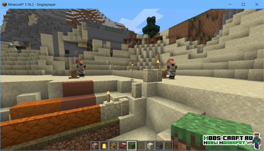 - «t» — размещение на стенах дополнительных факелов. В будущих версиях мода жители деревни могут медленно добавлять еще несколько факелов над дверями или внутри домов, в которых нет факела.