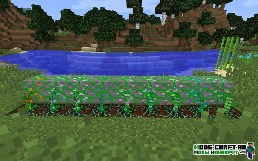 Resynth — это интересный фермерский мод, который позволяет вам выращивать ванильные и модифицированные руды, ресурсы и мобов. Для этого вам необходимо собирать минеральную почву и сажать к ним новые растения, после чего заниматься выращиваем. Добавляя больше минералов в почву вы ускоряете рост растений.
