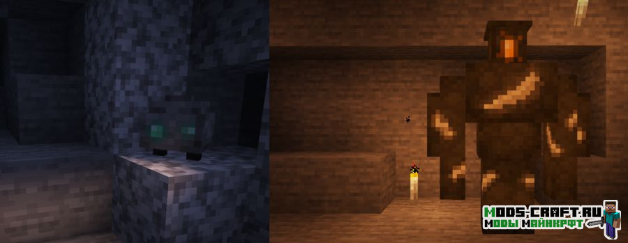 - Два новых пещерных моба и возможность создания факелов из камня, вместо палок.