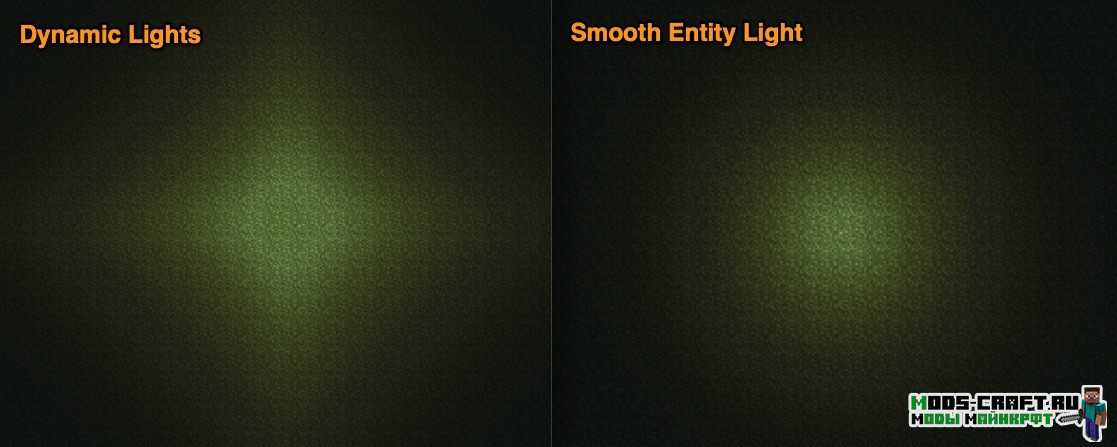 Справа версия Smooth Entity Light, слева Dynamic Lights.