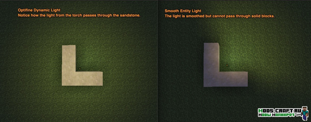 Smooth Entity Light изменяет освещение в игре, делая его более плавным и реалистичным.