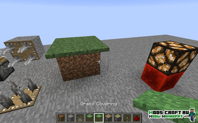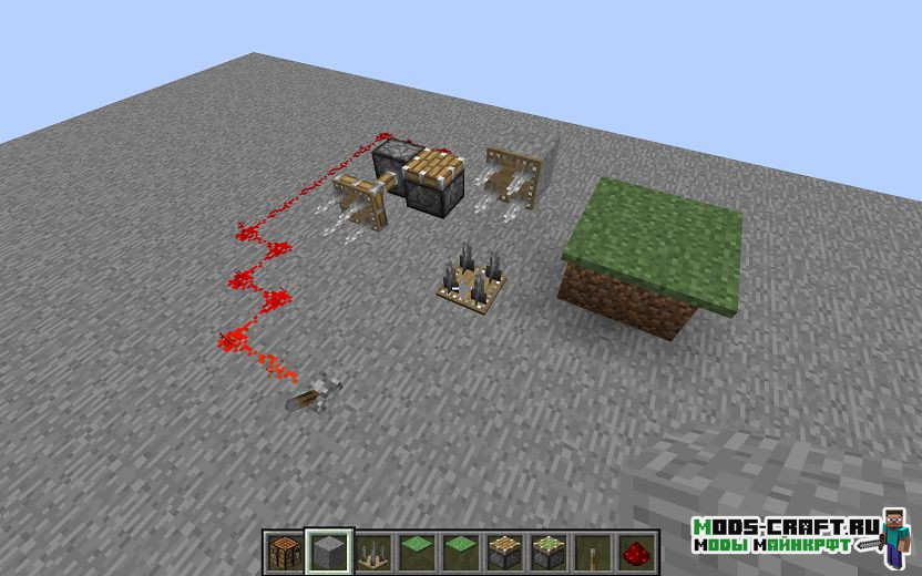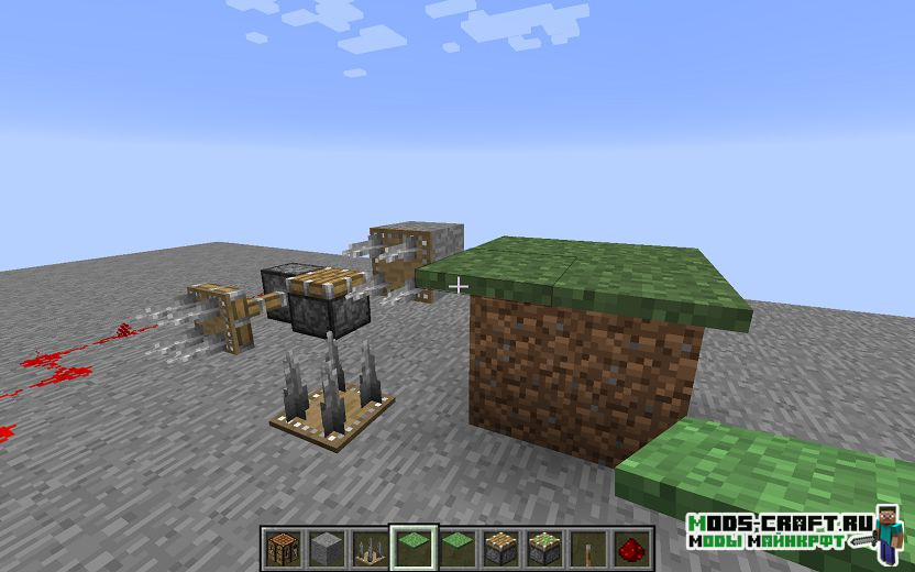 Spikes and Grass Covering — мод на ловушки, который добавляет шипы и фейковую траву. Шипы будут наносить урон всем существам, которые наступят на них, а падения с высоты более пяти блоков на шипы даст бонусный урон. Травяное покрытие сливается с обычным блоком травы и может быть использовано для обмана игроков, которые могут провалиться через неё.
