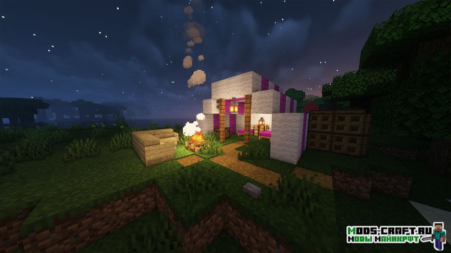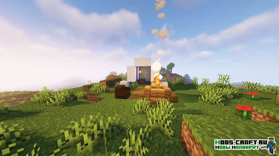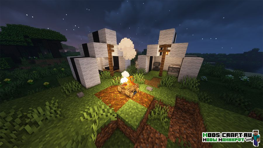 В мире игры Майнкрафт появятся новые структуры — лагеря. Существует несколько различных вариантов, в которых может сундук с лутом, кровать, костёр, верстак и многое другое. Встречаются они довольно редко и будут приятным сюрпризом для игрока. Они будут особенно полезны в режиме выживания, когда при ночном исследовании мира вам нужно место для ночлега и приготовления пищи. некоторые лагеря будут заброшенными, а некоторые заняты новым мобом — туристом. Он не будет добрым, если вы подойдёте к его лагерю слишком близко.