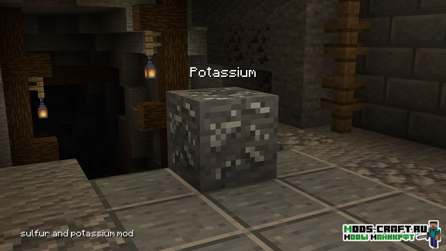 Данный мод добавит две новые руды — калиевую и серную, объединение которых позволит получить порох. Тем самым вы сможете вполне легально создавать порох не прибегаю к долгим поискам структур и убийствам мобов. Серная руда может быть найдена в обычном и нижнем мире, а калиевая только в нижнем мире.