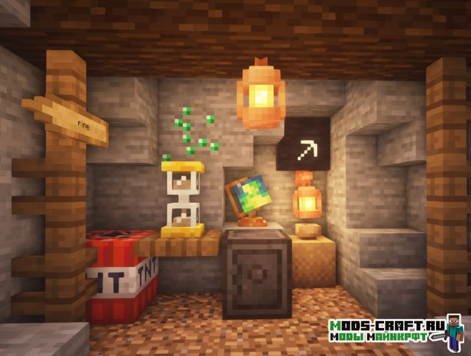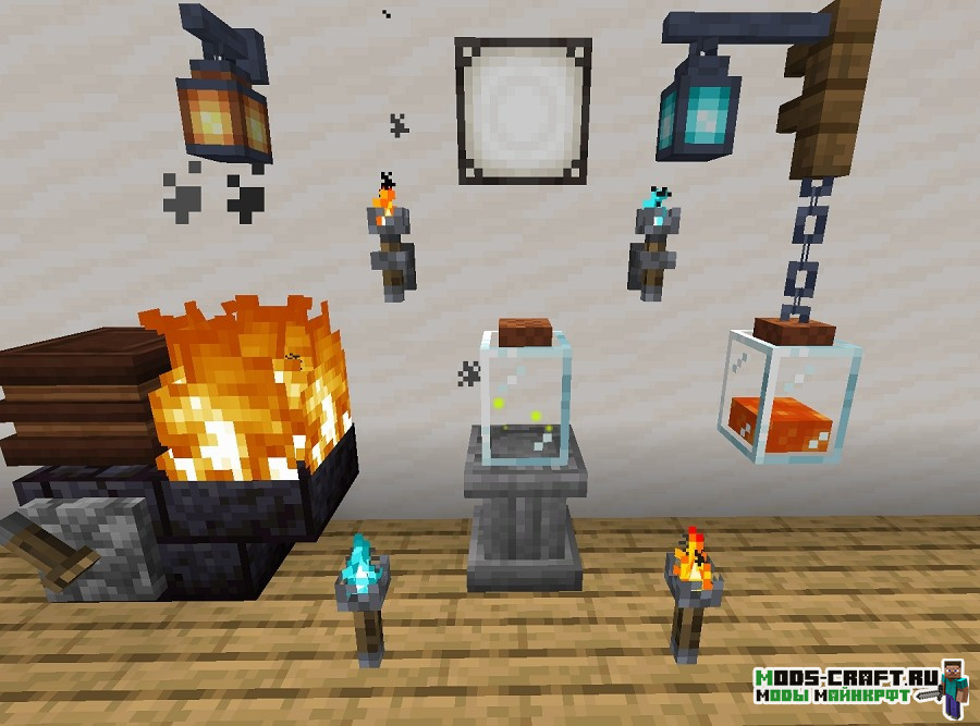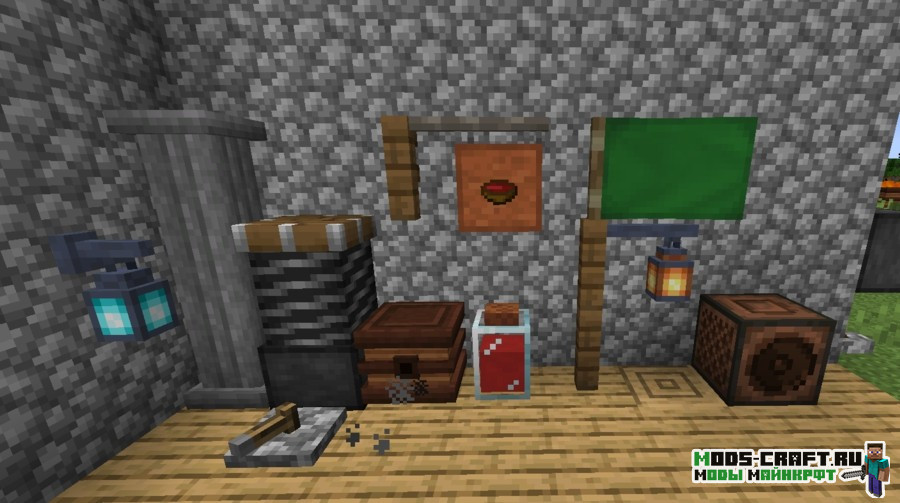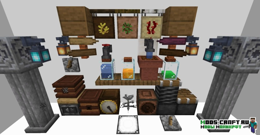 Мод Supplementaries добавляет большое количество различных анимированных и функциональных блоков декора, сохраняющих ванильный стиль игры Майнкрафт.