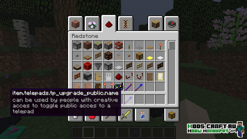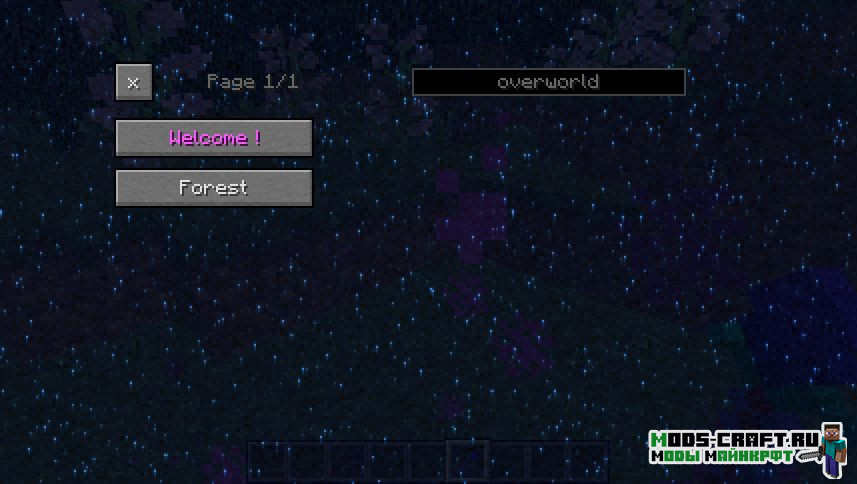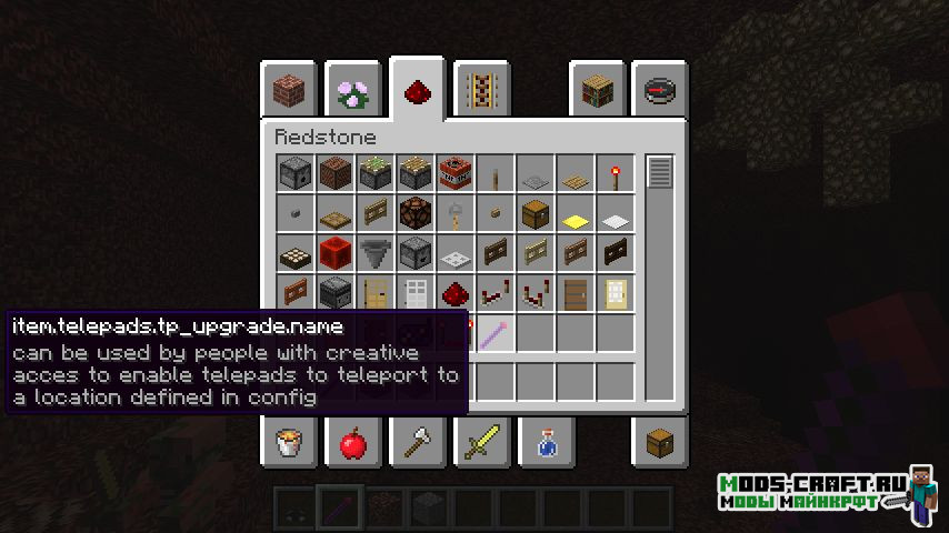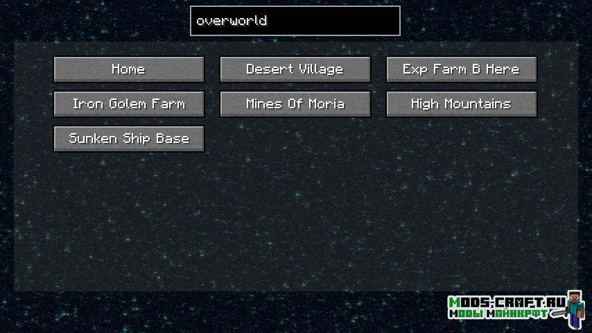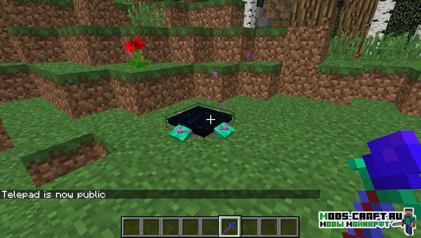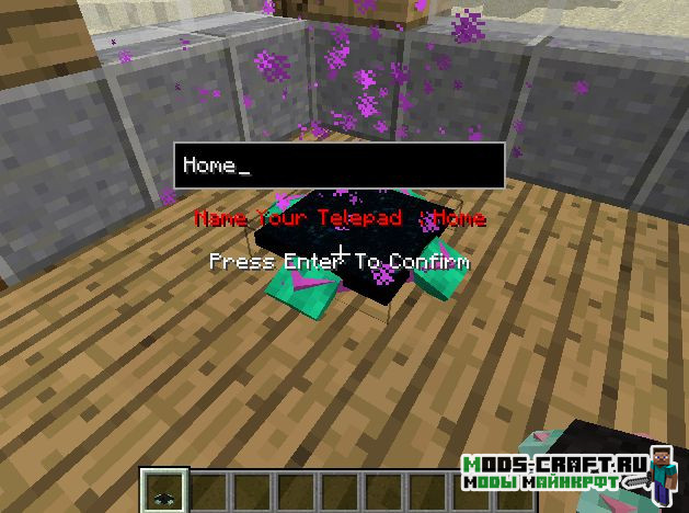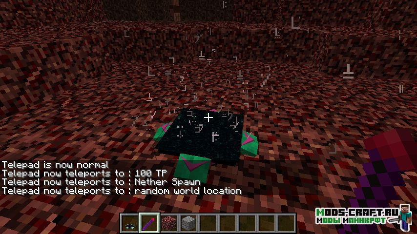 TelePads добавляет новое устройство, при помощи которого можно осуществлять телепорт между этими устройствами. Создайте телепортер, разместите его на земле и зайдите в его. После некоторого ожидания вы увидите интерфейс телепорта и список возможных точек для перемещения.
