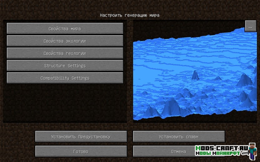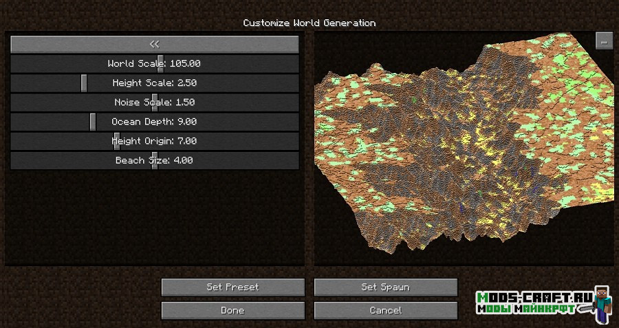 Чтобы всё это уписалось в игру Майнкрафт мир сделан в масштабе 1 к 40 (1 блок к 40 метрам), опять же, масштаб можно настроить с помощью специального ползунка. Также не забывайте, что моду необходимо постоянное интернет-соединение, ведь он берёт данные генерации на основе реальных карт.