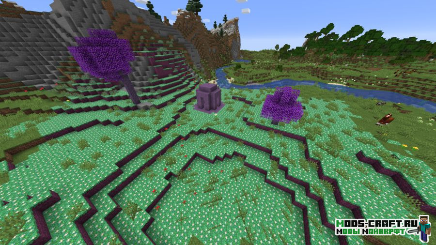 The Corruption — модификация вдохновлённая Terraria, добавляющая необычный биом, который будет распространяться с течением времени, занимая все больше территории. В данном биоме вы можете встретить новых и опасных врагов, отыскать сундуки с сокровищами в пещерах, а также исследовать различные структуры. Особо смелые игроки, которые осмелились исследовать этот опасный биом, будут вознаграждены уникальными инструментами, оружием, сетами брони и дальнобойным мушкетом. Данный биом есть и в нижнем мире и работает точно также, не забывайте об этом.
