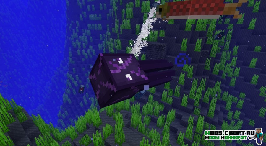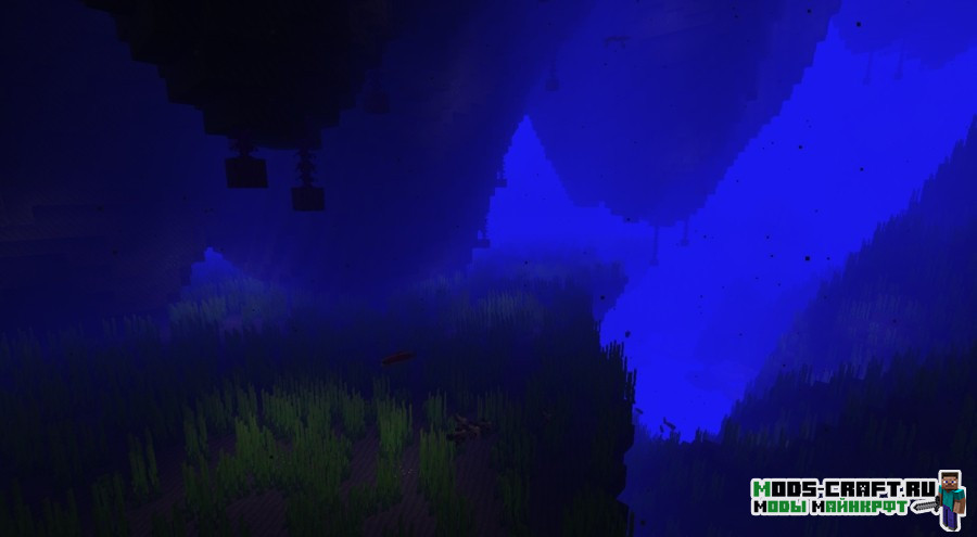 The Deep Dark Ocean Dimension — это крайне необычный мод, который добавит в ваше привычное выживание одно новое измерение. Да не простое – а водное измерение, глубокое и полное своих «подводных камней». В этом измерении вас ждут несколько слоёв, на каждом из которых произрастает своя флора и обитают различные водные создания. И чем глубже вы погрузитесь, тем будет опаснее, а близ дна вас будут подстерегать чудовищные боссы – гигантские кальмары! Чтобы отправиться в это увлекательное путешествие, вам потребуется создать предмет «Зов Глубин» и затем просто съесть его, после чего вас мигом переместит в подводные глубины, где вы начнёте своё приключение!