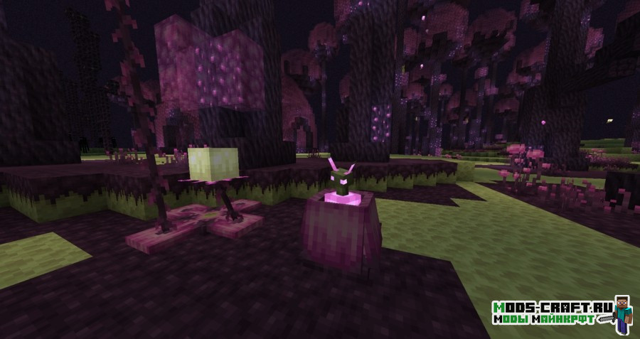 Endergetic Expansion — это один из самых лучших и качественных модов, расширяющий измерение Края. Он добавит новый биом: загадочный Пуазовый лес, а так же целые экосистемы из его обитателей, среди которых вам встретятся как трудолюбивые Пуфмиты, живущие в ульях и опыляющие цветы, так и голодные Бифало, которые ими питаются.