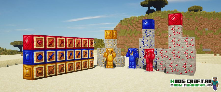 The Gems Project — это мод, который направлен на улучшение всех аспектов игры Майнкрафт при помощи изменения некоторых механик и добавления нового контента. Появятся новые руды топаза, сапфира и рубина, из которых вы сможете создать инструменты, оружие и броню. Введена система луков, арбалетов и щитов, теперь их можно создавать из разных материалов. Помимо этого на глубинах пещер размещены окаменелости, которые можно добыть киркой.