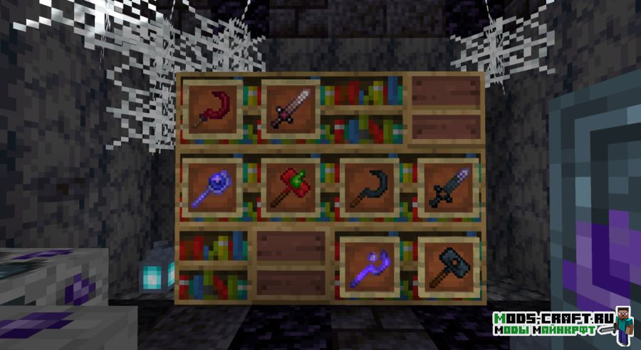 The Impish Tome — интересный мод, пытающийся вернуть давно забытых мобов из старых версий игры Майнкрафт, которые когда-то бродили по нашему миру. Эти мобы являются дальники предками текущих мобов и чем-то напоминают их как внешне, так и по поведению. Также будет добавлена новая руда мощная руда — литий. По защитным характеристикам он конкурирует с алмазами, а по силе с незеритом. Из литиевой руды можно создать оружие, броню и только новые варианты инструментов: серпы, сабли, скипетры и молоты. Они улучшаются при помощи магических рун на кузнечном столе.