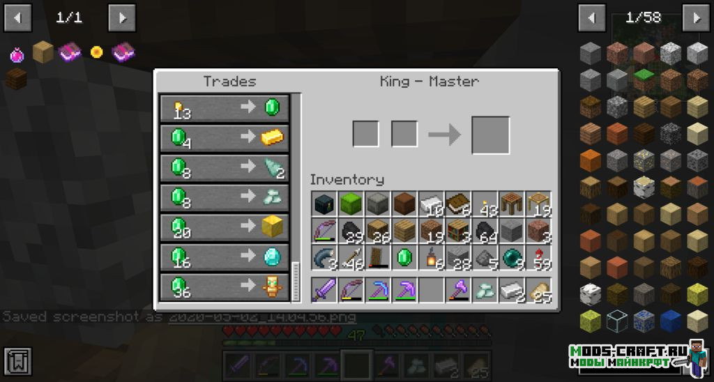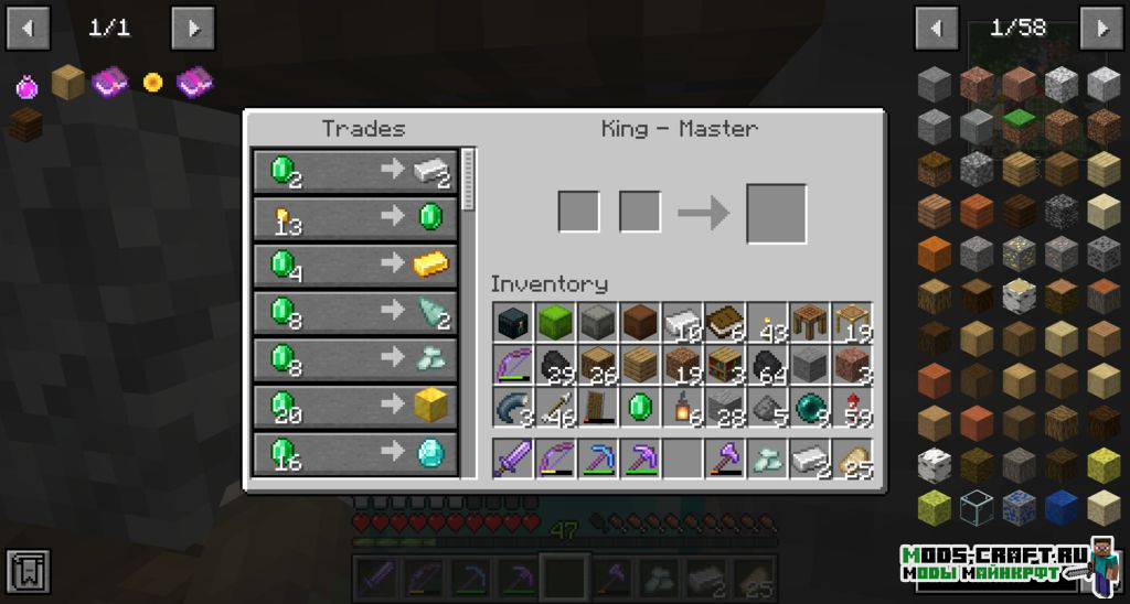 Вы сможете скрафтить трон и разместить его в деревне, после чего один из жителей сможет стать королём деревни и торговать с Вами всякими ценными предметами.
