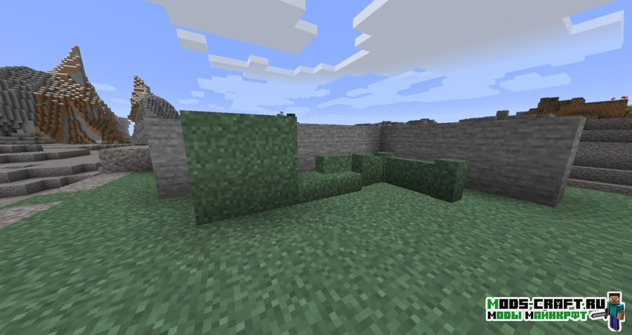 Turf- это простой декоративный мод, добавляющий различные декоративные блоки (лестницы, полублоки, заборы, плиты, стены) с текстурой травы + возможность покраски в 16 цветов. Благодаря такой вариативности, можно создавать уникальные цветные блоки по вашему вкусу.