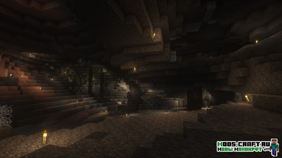 Мод Unearthed добавит 15 новых типов камня и коренной породы, которые пригодятся в строительстве, а также разнообразя рельеф однотипных пещер.