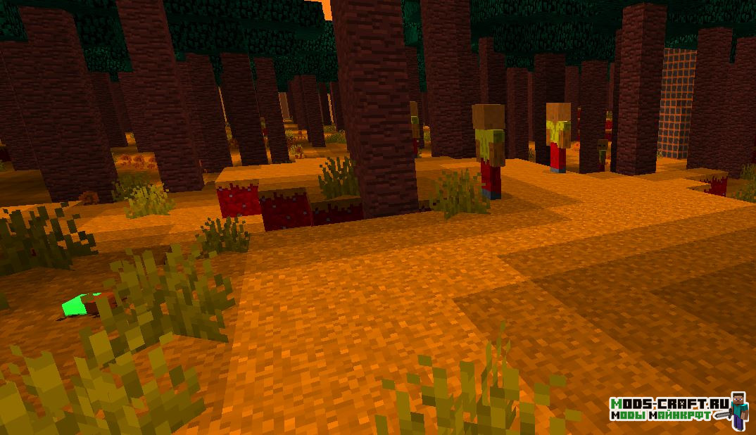 Ventures — интересный мод для искателей приключений в Майнкрафт, делающий исследования, приключения и механику сражений более интересными чем ванильная версия игры. Почти сразу же вы столкнётесь с новыми врагами — глазами Нексуса. Победив их, вы получите глаза, которые можно использовать для создания портала и активатора в новое измерение — осенний лес. Оказавшись в нём, начните с исследования его таинственного мира, находите новые виды блоков, создавайте новое мощное оружие и сражайтесь с новыми видами мобов! После этого вы можете попробовать сразиться с боссами.