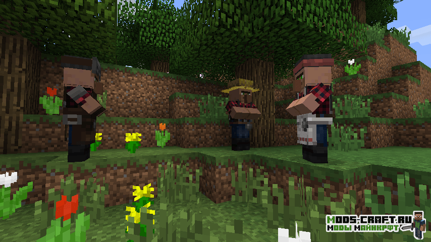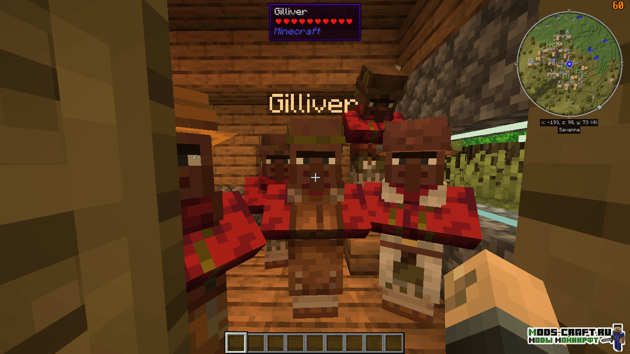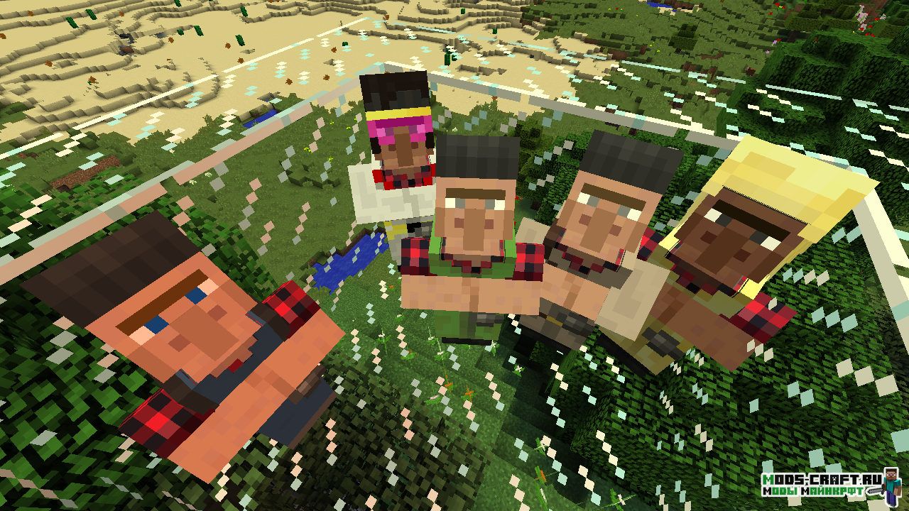 Помимо этого у всех жителей появился свой уникальный цвет кожи, в зависимости от их места обитания, а также интересный и разнообразный внешний вид в виде новой одежды. Также добавлены некоторые новые виды профессий у жителей, особенности торговли и здания в деревнях. Если вы хотите изменить деревни в Майнкрафт и добавить в них что-то новое, модификация Villager Names идеальный вариант.