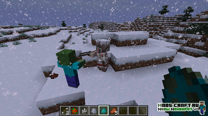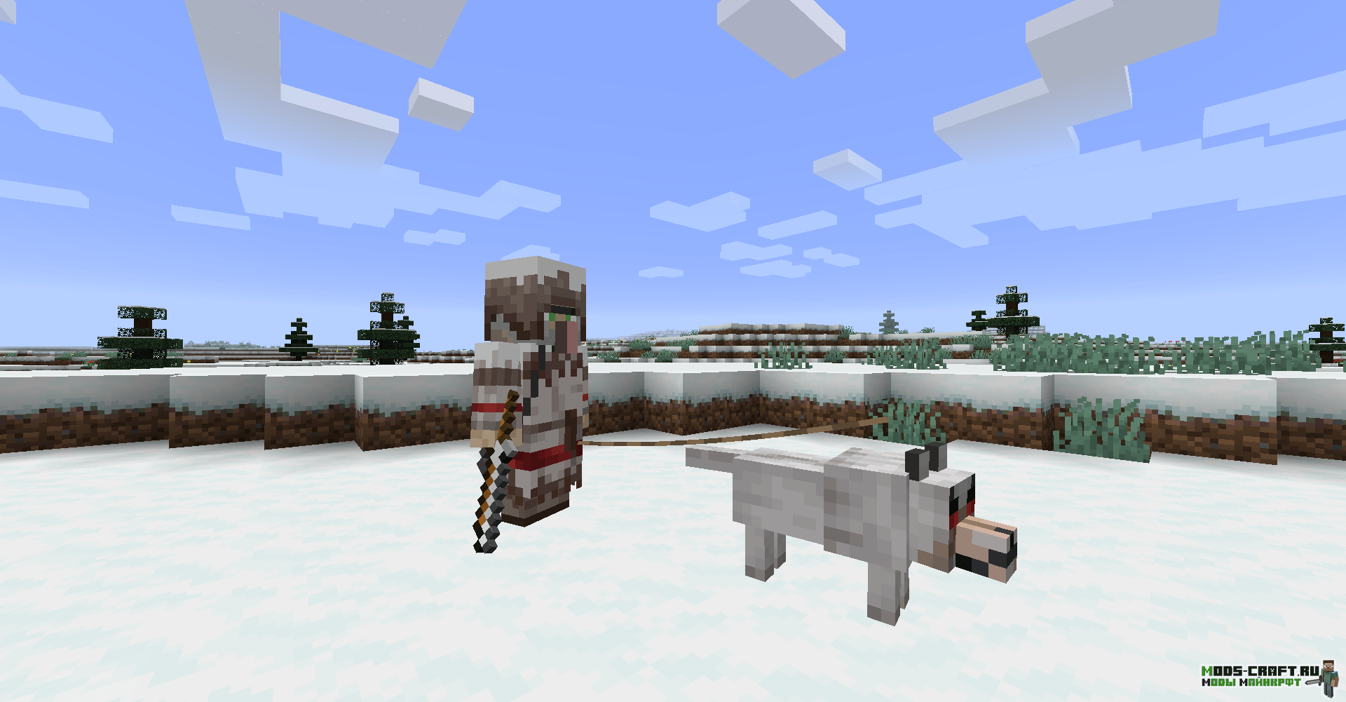 Отныне изучая холодные биомы вы сможете встретить странствующего охотника с собакой, который охотится на диких животных и может продавать вам их шкуры и изумруды, а также может обменять их на фонарь или часы.