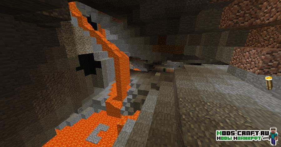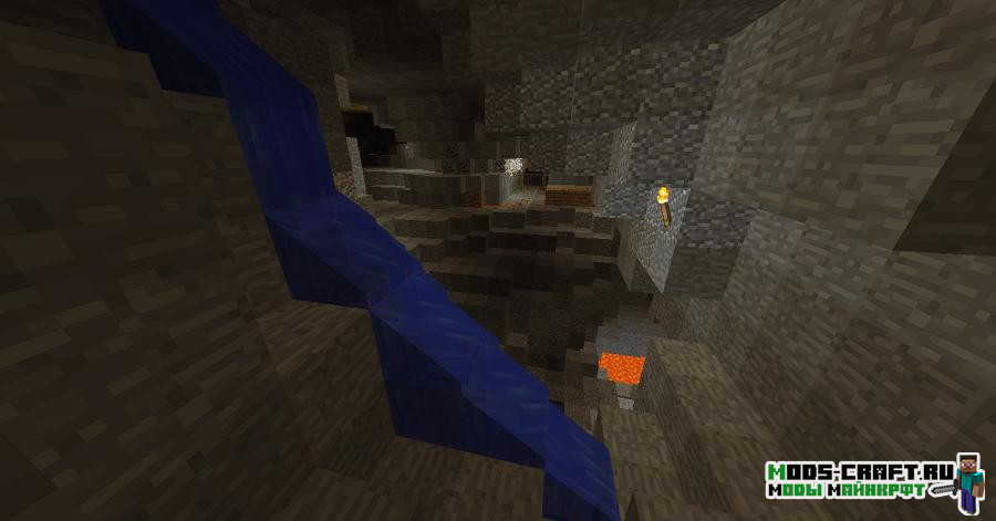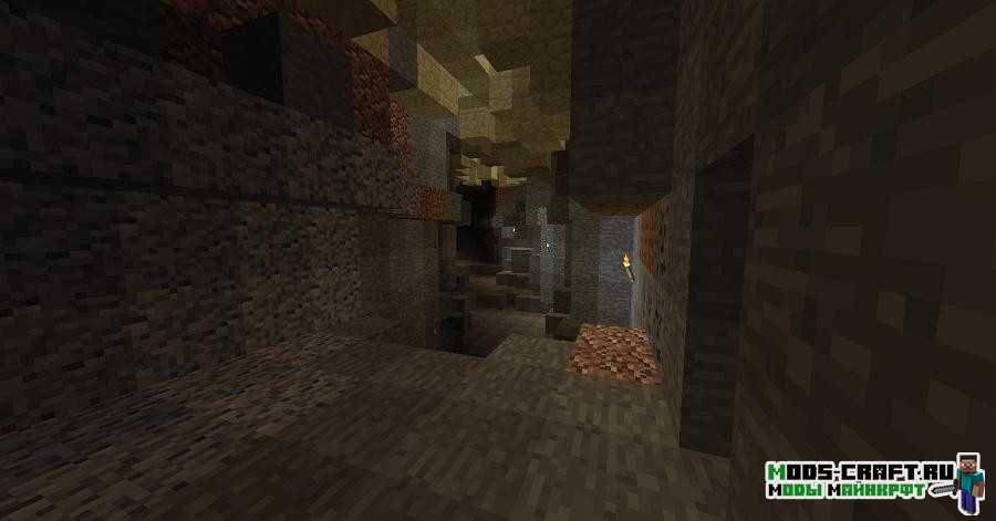Идея мода в том, чтобы улучшить ванильную генерацию систем пещер в Майнкрафт на более реалистичную и интересную в плане исследования. Пещеры теперь станут бесконечно связаны между собой и не будут прерываться, так же вам не нужно будет копать много камня, чтобы отыскать пещеру. Достаточно найти один коридор и начать исследовать различные разветвления от него.