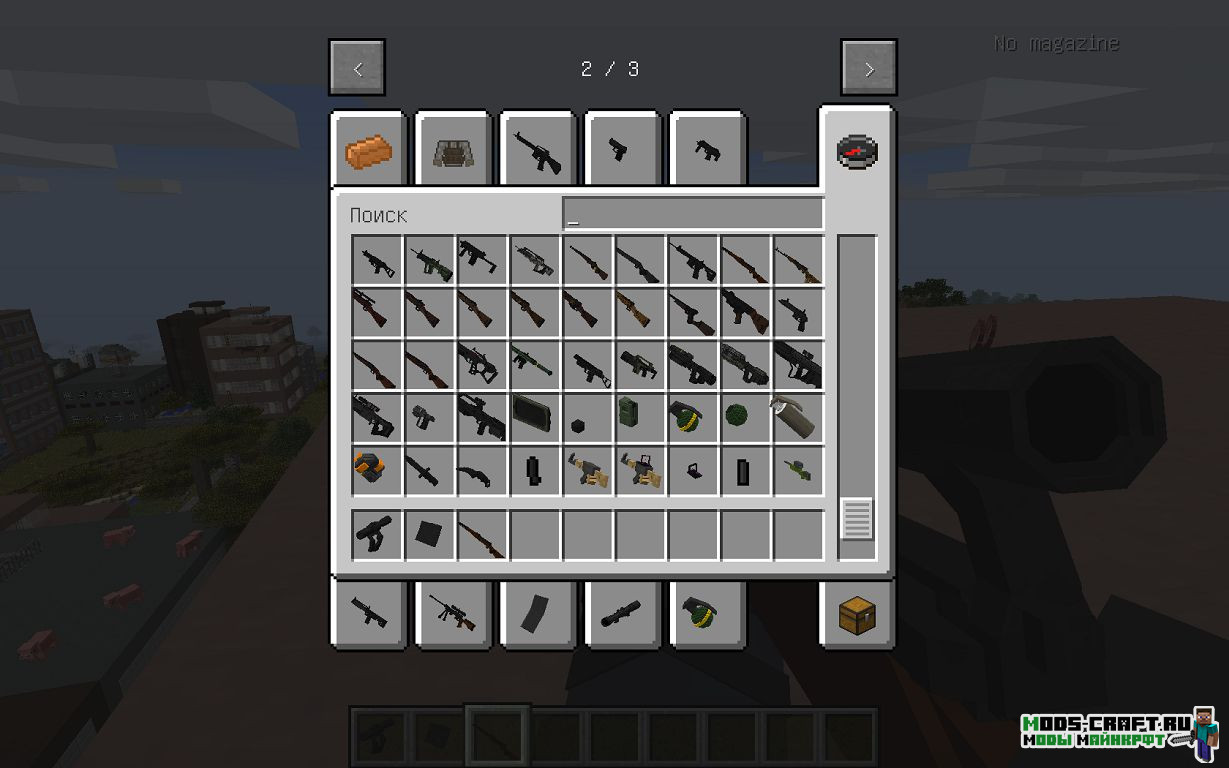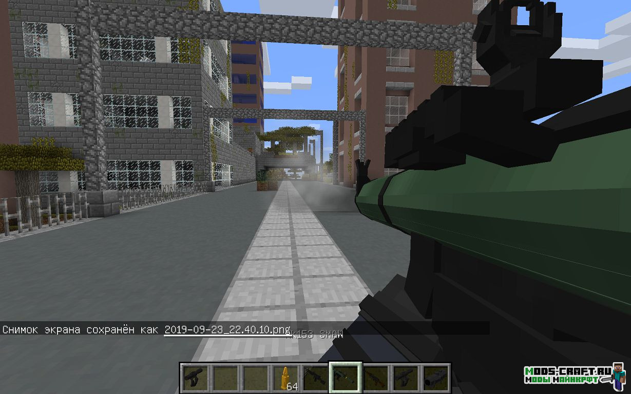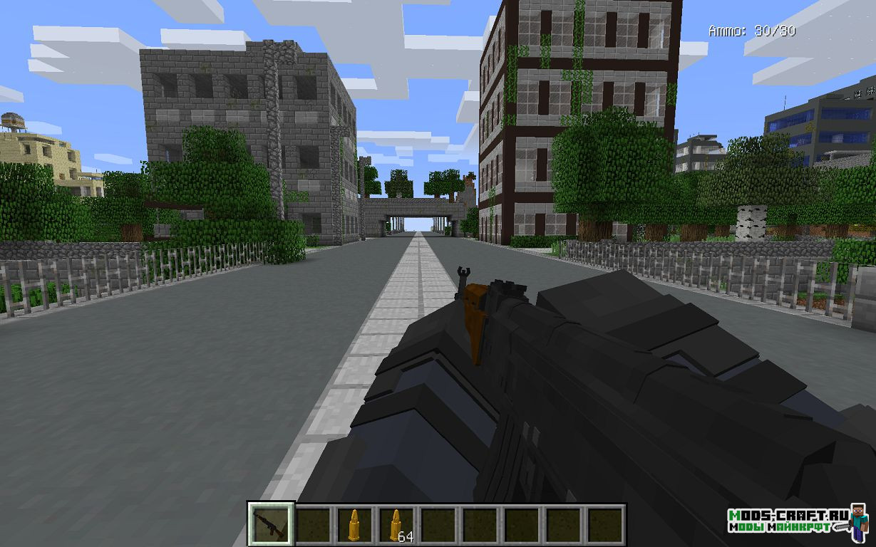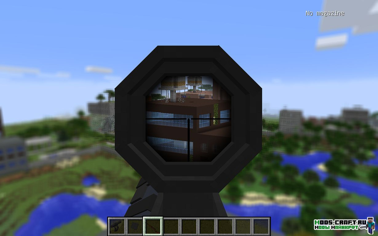 Мод Modern Warfare добавляет множество реалистичного огнестрельного и холодного оружия для Minecraft 1.12.2 — снайперские винтовки, автоматы, пистолеты-пулемёты, различные миниганы, ракетницы, ножи и катаны. Для стрельбы из оружия, вам необходимо будет создавать магазины и патроны к ним. Кроме этого существует специальная система обвесов для установки на стволы различных коллиматорных, лазерных и снайперских прицелов, подствольников, рукояток и прочего. Это один из самых лучших оружейных модов на майнкрафт из-за количества пушек и контента.
