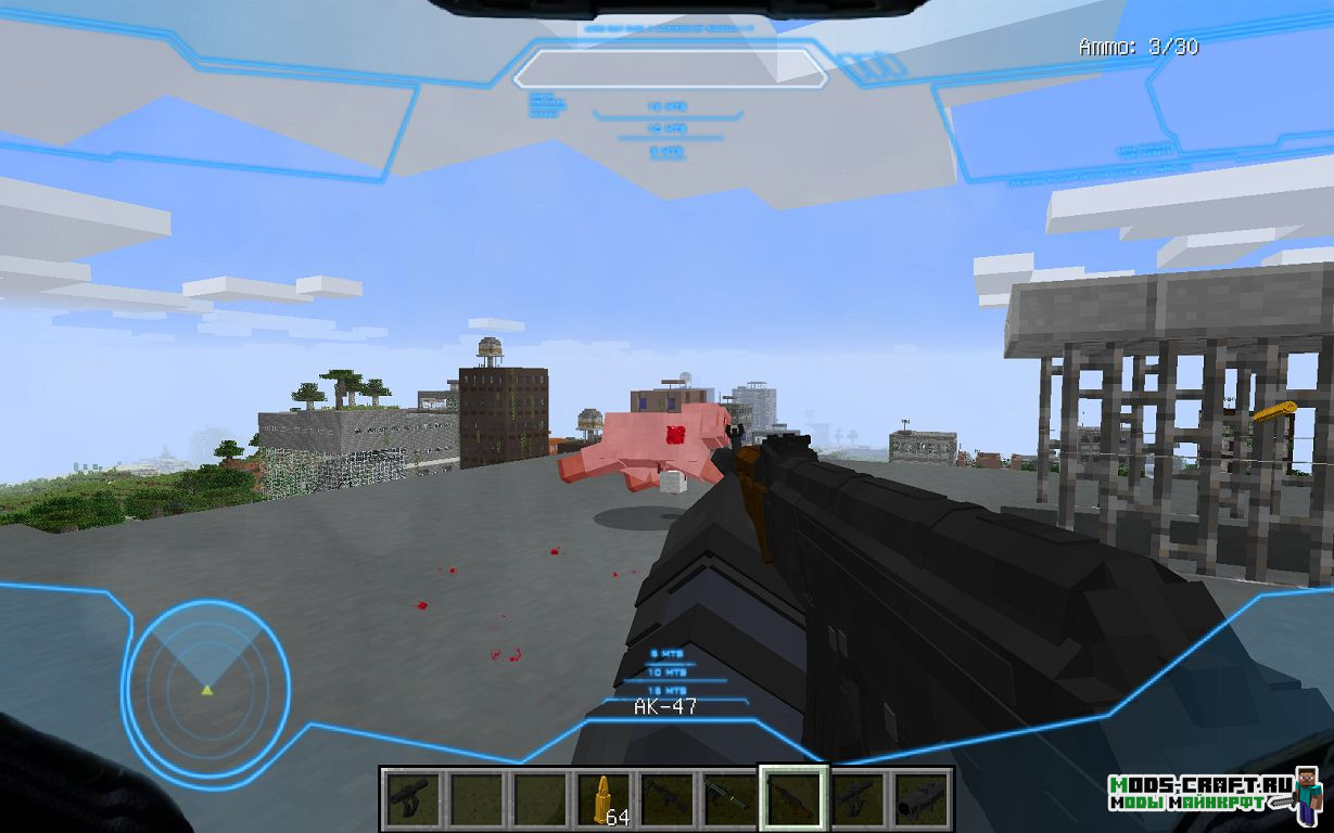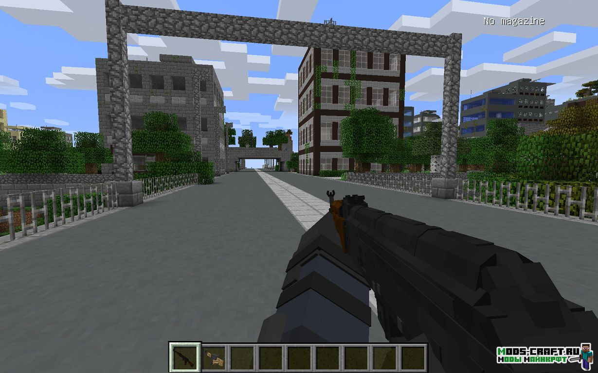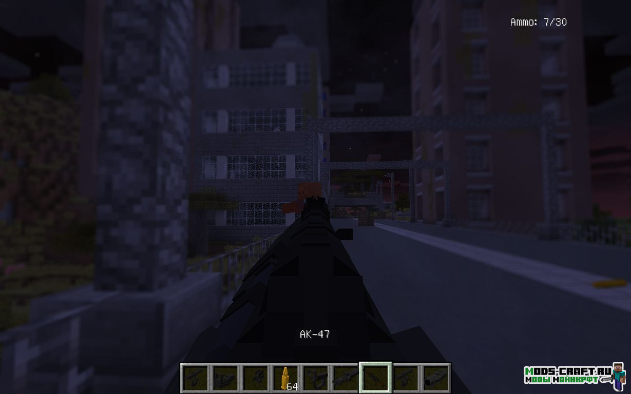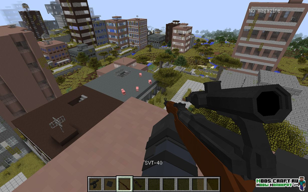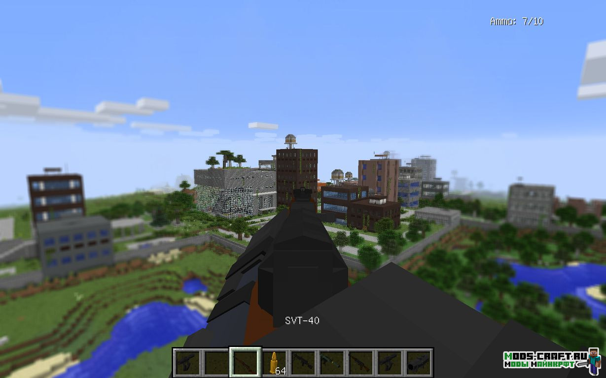 Мод Modern Warfare добавляет множество реалистичного огнестрельного и холодного оружия для Minecraft 1.12.2 — снайперские винтовки, автоматы, пистолеты-пулемёты, различные миниганы, ракетницы, ножи и катаны. Для стрельбы из оружия, вам необходимо будет создавать магазины и патроны к ним. Кроме этого существует специальная система обвесов для установки на стволы различных коллиматорных, лазерных и снайперских прицелов, подствольников, рукояток и прочего. Это один из самых лучших оружейных модов на майнкрафт из-за количества пушек и контента.
