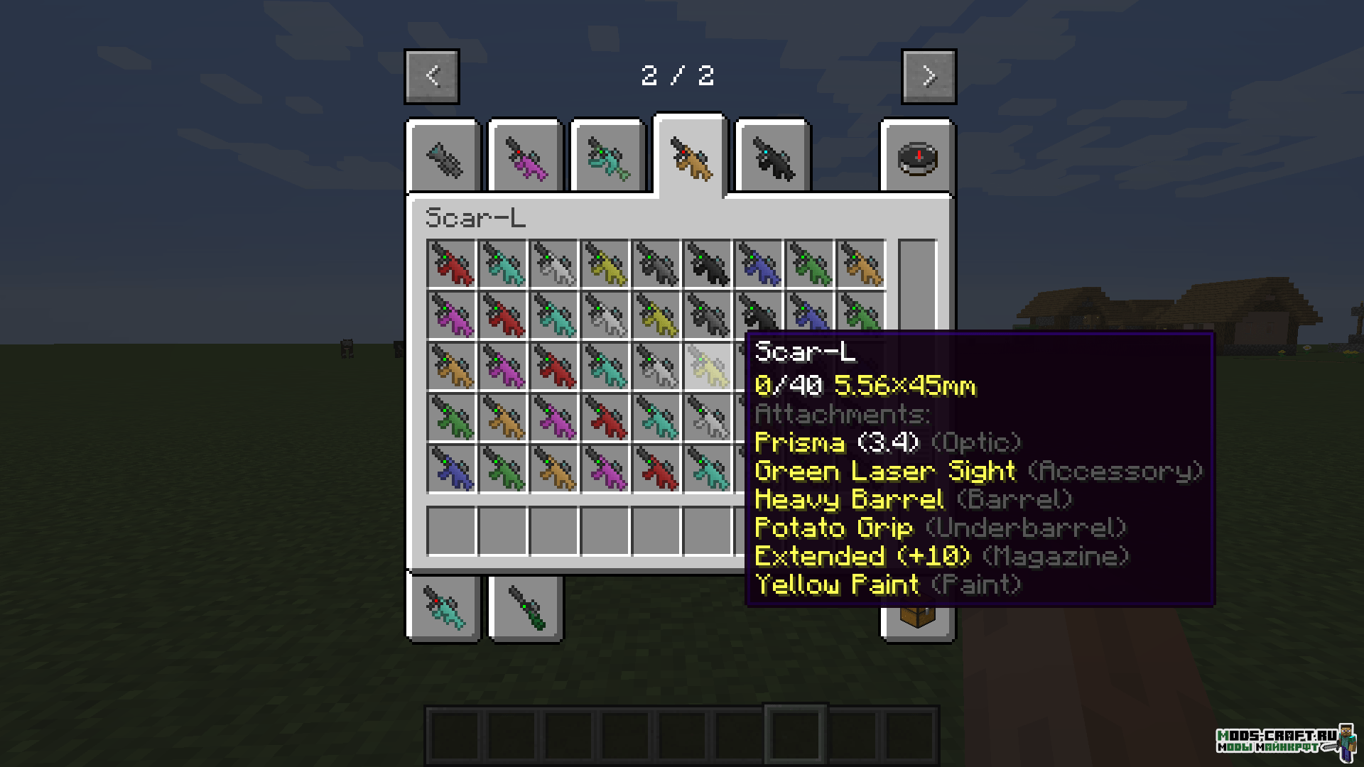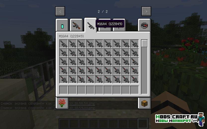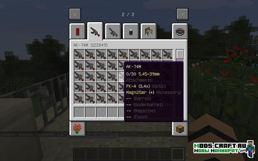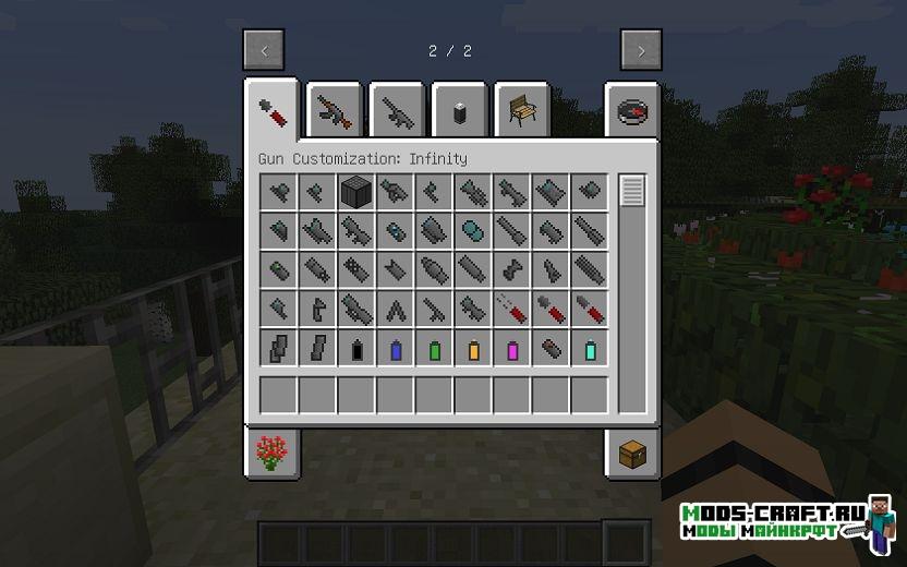 Данный мод под названием Gun Customization Infinity добавит набор огнестрельного оружия и возможность модифицировать его с помощью различных приспособлений, вроде прицелов, лазерных целеуказателей, глушителей и возможность красить оружие в различные цвета. Кроме этого сделана реалистичная физика стрельбы и типы патронов. Также в новой версии модификации появились такие виды оружия как СВ-98 и SCAR-L.
