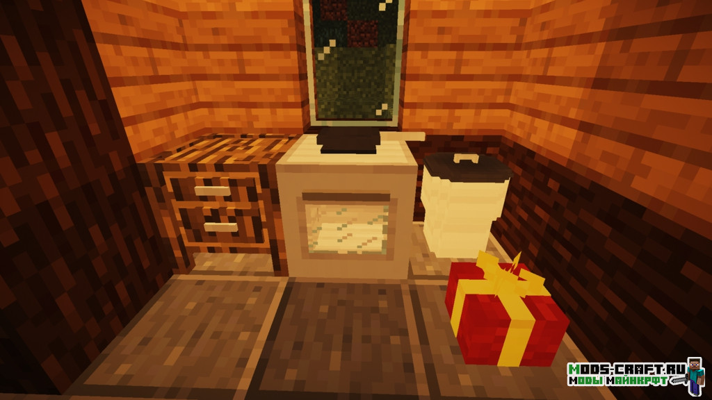 Мод PlayTics Furniture добавляет различные блоки декора и мебели, а также новые виды еды в Майнкрафт. Каждый декоративный блок будет иметь уникальный рецепт крафта и функционал, вроде хранения предметов, приготовления пищи или освещения местности.
