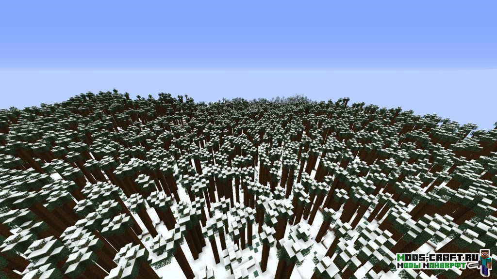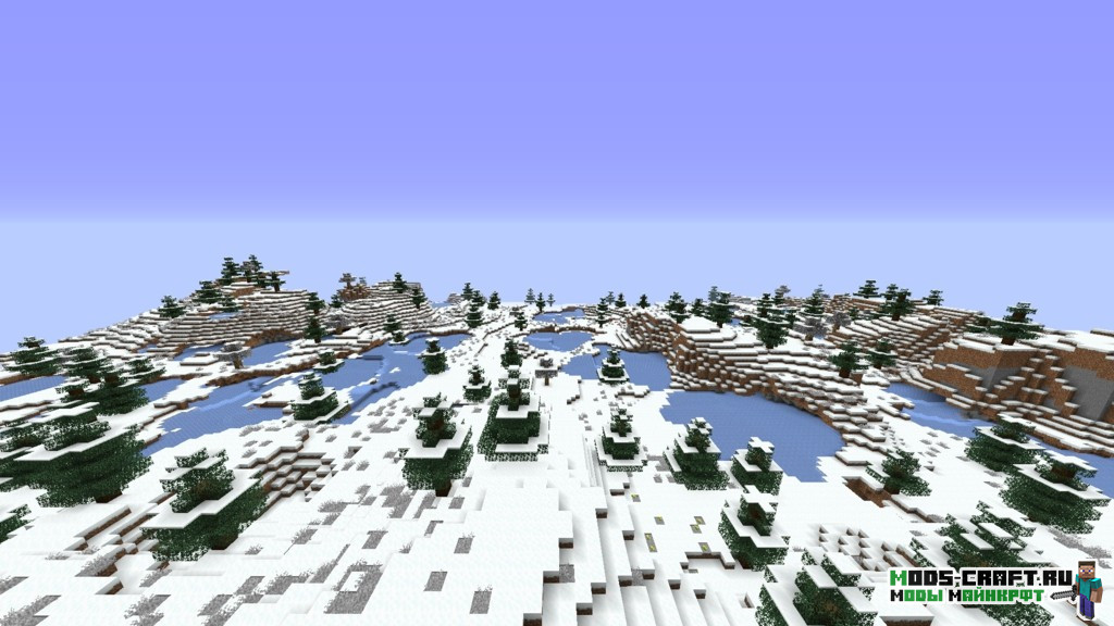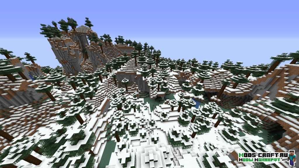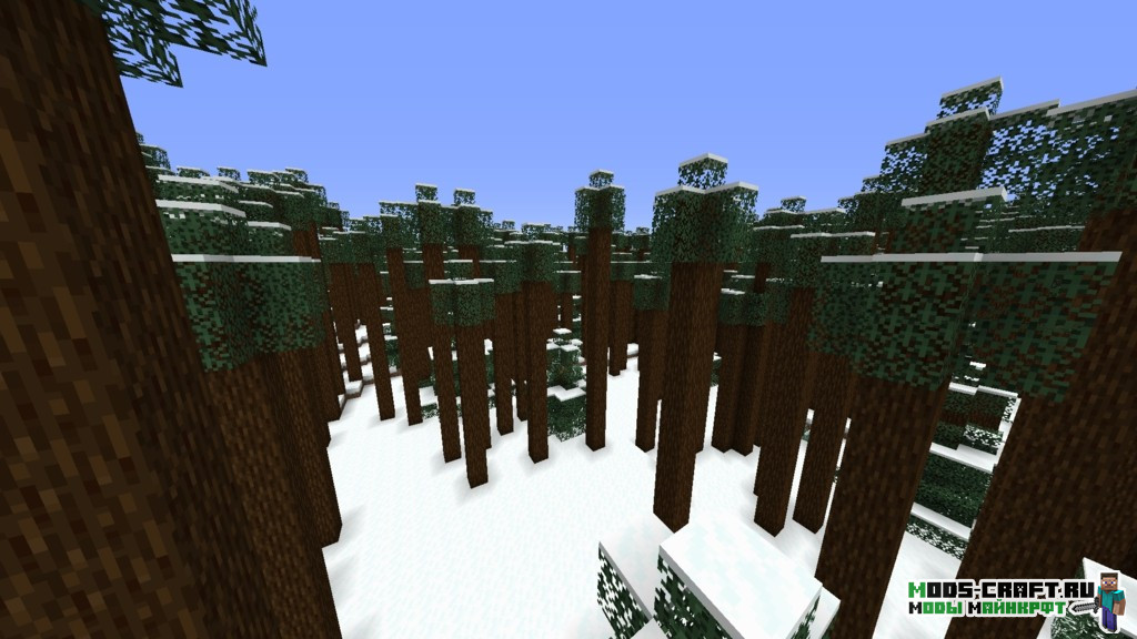 Мод добавит 5 новых зимних биома в Майнкрафт — это большие замёрзшие озера, густой таёжный лес, ледяной лес, снежные высокие горы и замёрзшие озера. Все они будут встречаться игроку довольно часто. Разнообразь игру великолепными снежными пейзажами и исследуй новые места.