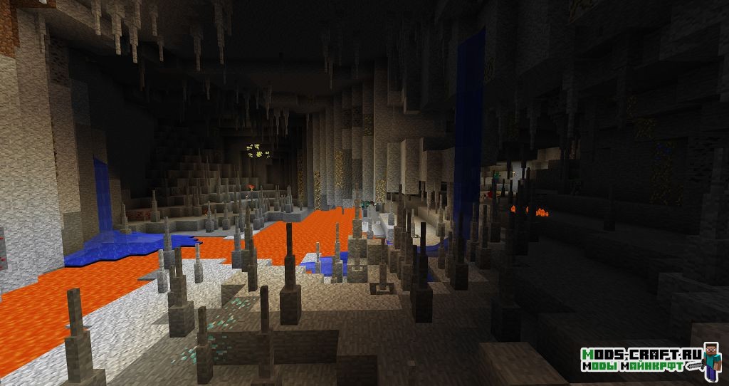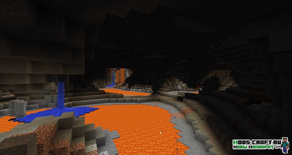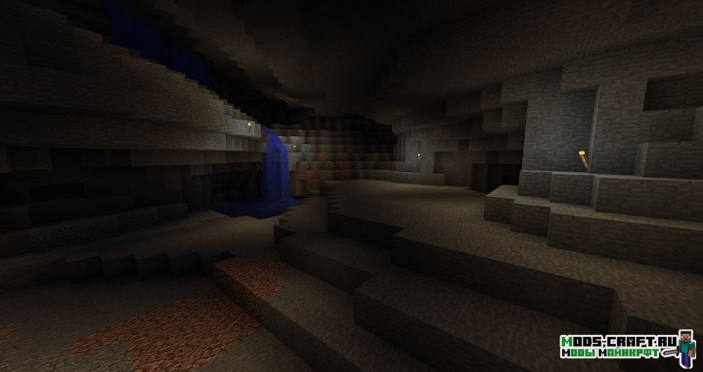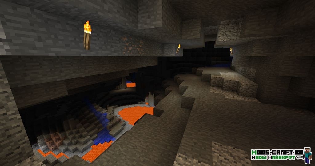 Мод YUNG’s Better Caves изменяет генерацию пещер на более реалистичную, теперь пещеры будут больше и шире, но чуть ниже в соответствии с нашим реальным миром. Вы сможете наблюдать там озёра лавы и воды, большие скопления алмазов и прочее. Мод гибко настраивается под себя: изменяется частота появления пещер, их размер и полезные ископаемые.