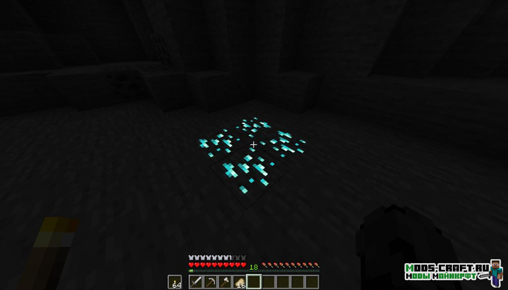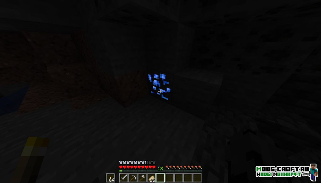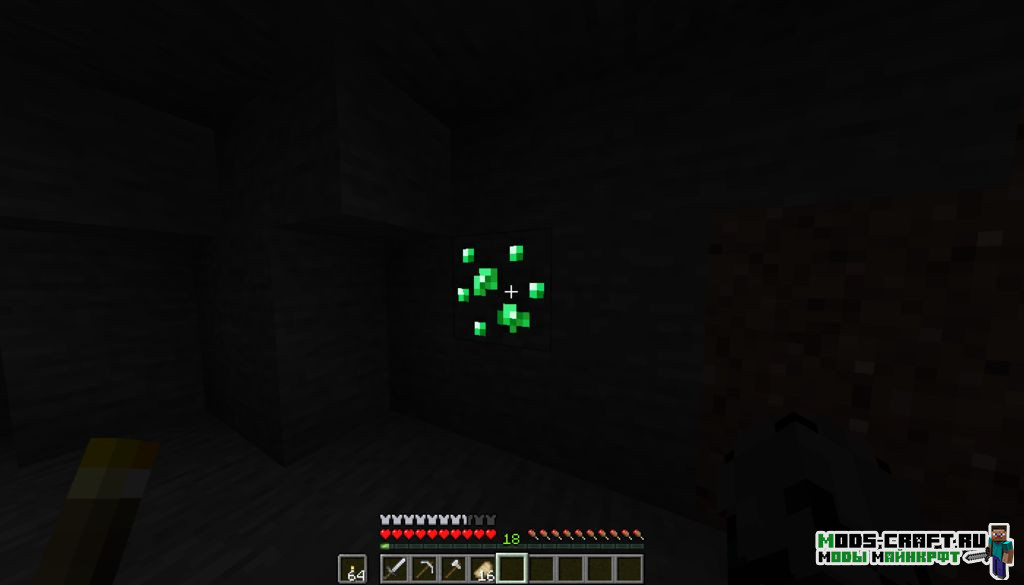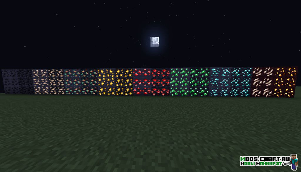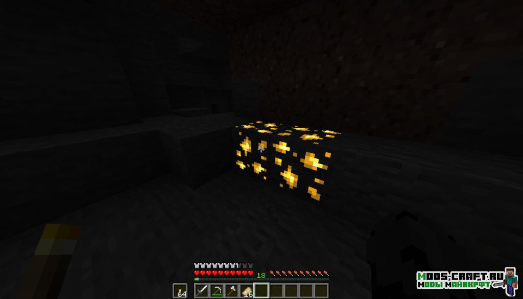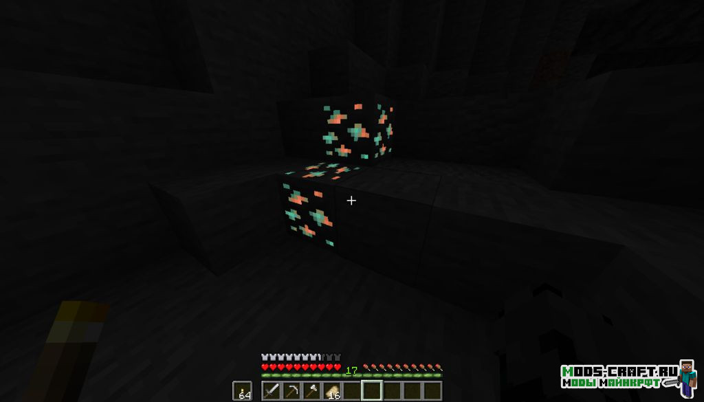 Данный текстур-пак делает изменяет визуальную часть руд и теперь они станут излучать красивое свечение. Особенно эффектно это выглядит в тёмной пещере.