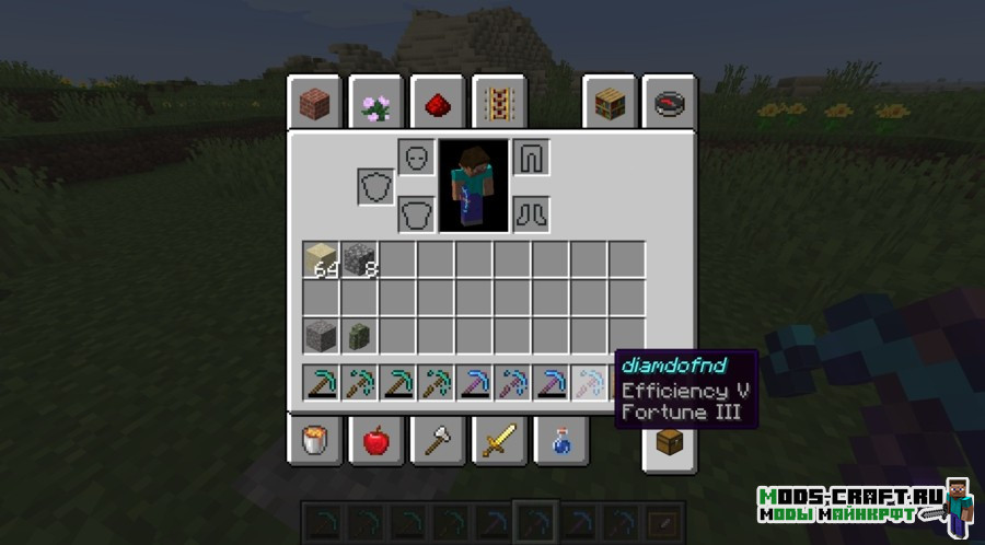 Мод Ruined Equipment изменяет механику поломанных вещей и теперь они не пропадают, а становятся разрушенными. Это позволяет владельцу отремонтировать их на наковальне наковальне или в верстаке, объединив два разрушенных предмета; либо просто сохранить себе на память. При достижении 0 значения прочности у брони, инструмента или оружия вы услышите характерный щелчок — это означает, что предмет сломался. У разрушенного предмета остаются чары, цвет и название.