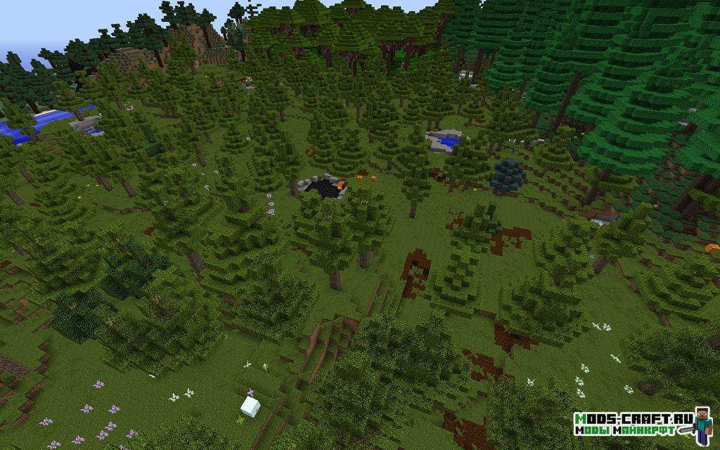 - BiomesYouGo — добавит яркие, впечатляющие биомы, а также некоторые блоки и предметы