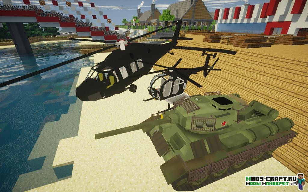 Хочу представить вам мою новую сборку на Майнкрафт 1.12.2, где есть машины, огнестрельное оружие, гранаты, ракеты, танки, вертолёты, самолёты, кучу различной современной военной брони и прочего. Здесь вы сможете как ездить на спортивных автомобилях в игре, так и воевать с помощью нового арсенала оружия.