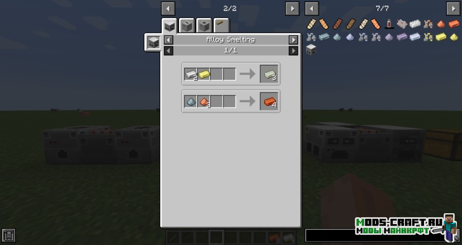- Alloy Smelter — плавит несколько несколько руд в одну, например, получить бронзу из сплава меди с оловом.