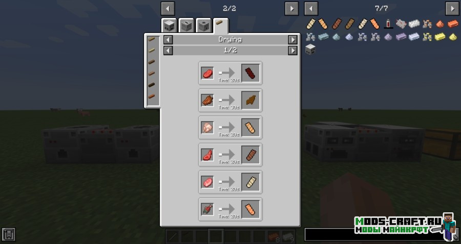 - Drying Rack — превращает мясо в вяленое и гнилое мясо в кожу. Можно добавить дополнительные рецепты.
