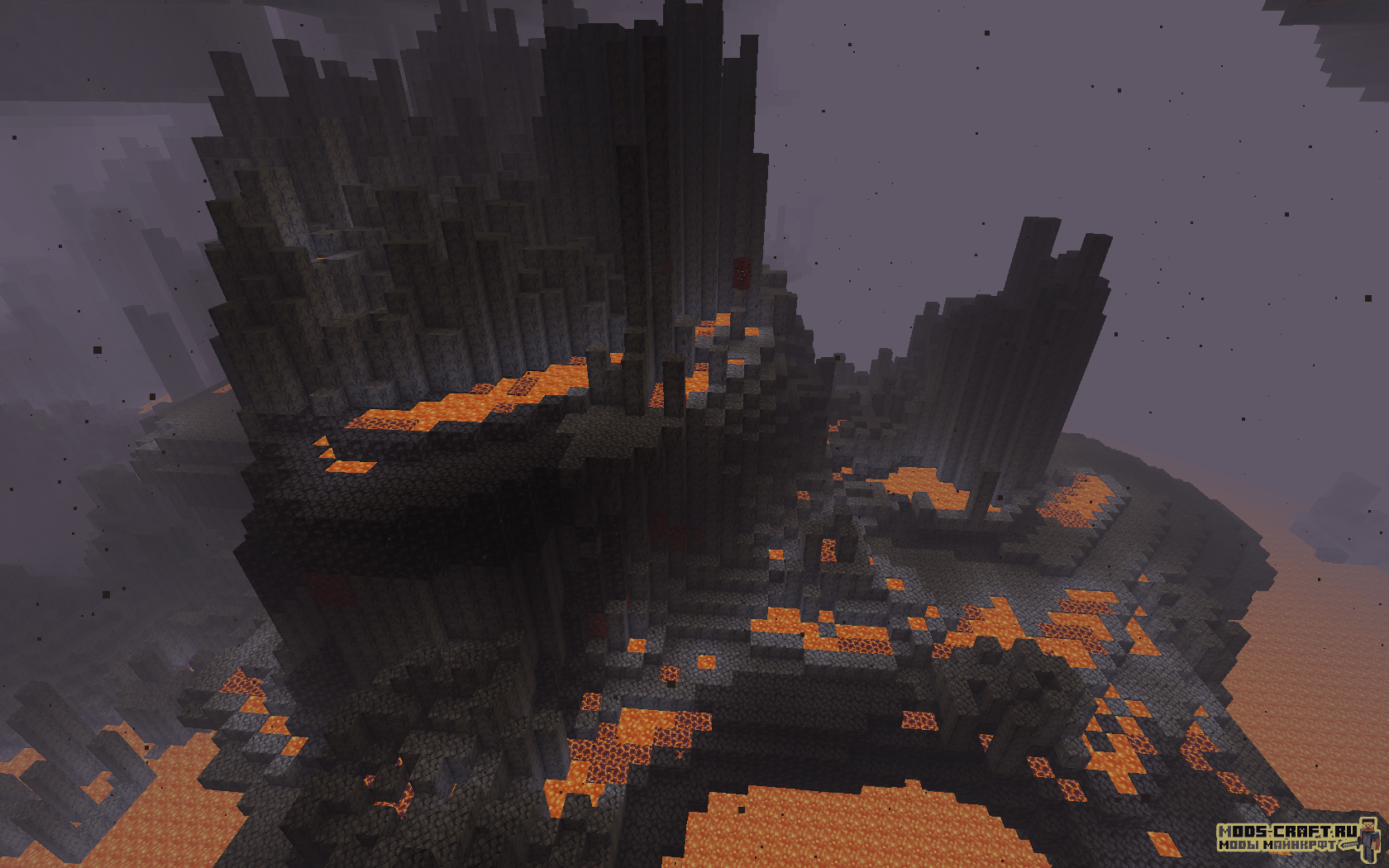 - Базальтовые дельты — биом нижнего мира, состоящий из камня и вулканов с летающими в воздухе частицами вулканического пепла и серы. Здесь обитают Гасты, Страйдеры и много лавовых кубов.