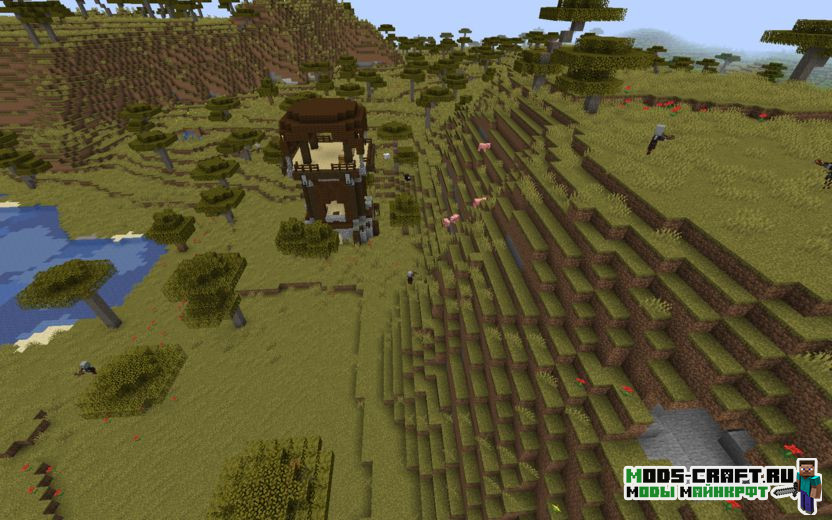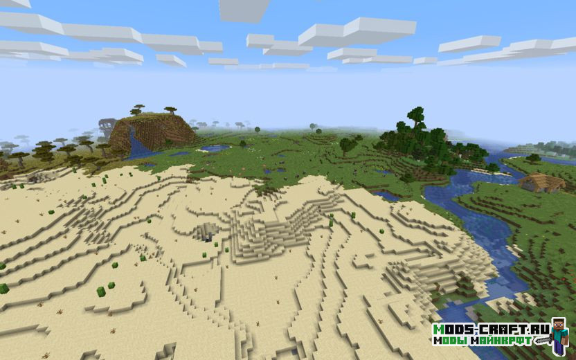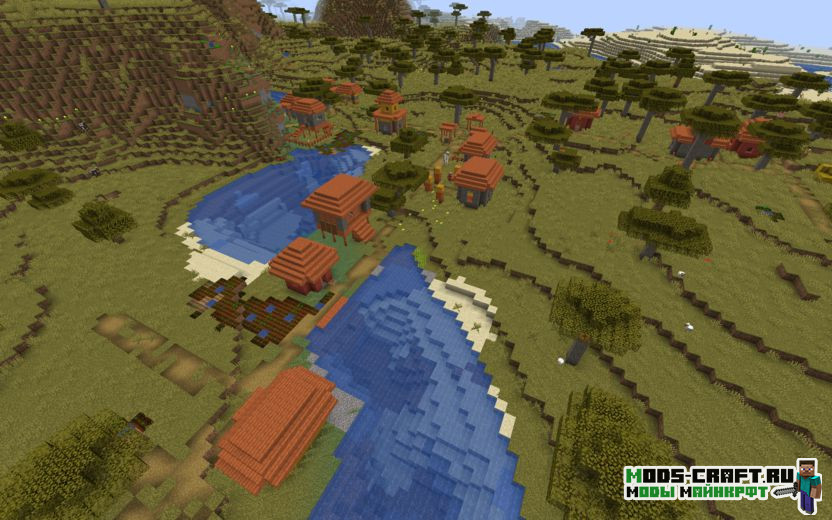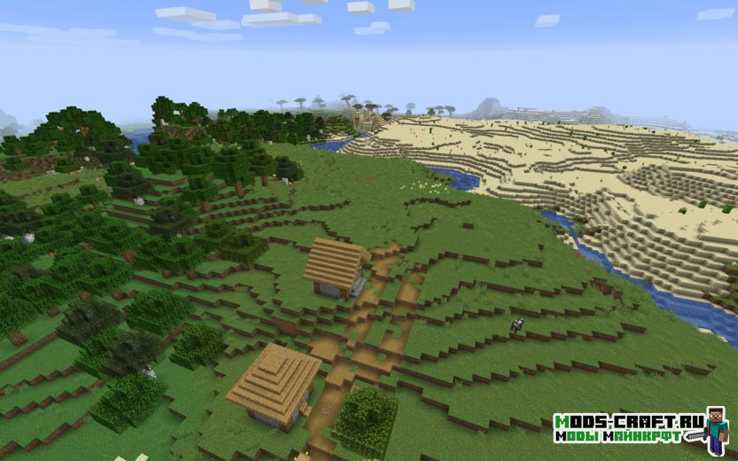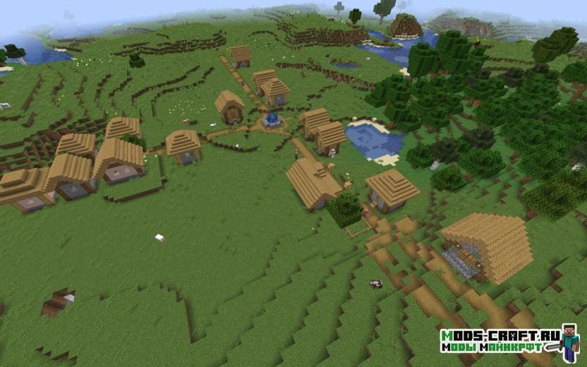 Редкий сид, спавнящий игрока во время создания мира прямо в центре деревни на равнине! Деревня довольно большая и богатая на ресурсы, поэтому здесь очень выгодно начинать выживание. Недалеко от деревни есть храм в пустыне, найти его можно пойдя по течению реки, а за ним деревню в саванне. Справа от храма за горой расположился аванпост бандитов.