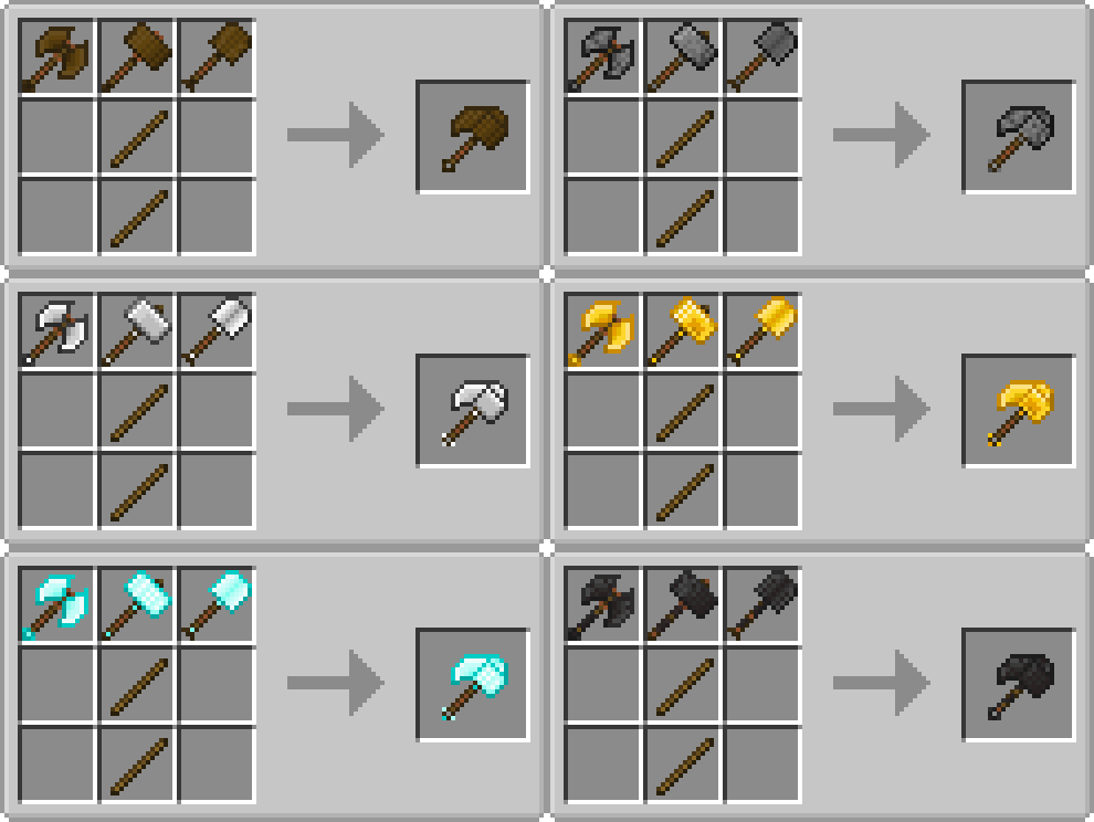 Добавляет множество различных инструментов. Различаются они между базовыми внешним видом и техническими факторами. В набор мода входят: молоты и двойные молоты, двойные оси, пики, спаксеры и возможность создавать универсальные орудия. Их устойчивость и эффективность выше чем у стандартного набора.
