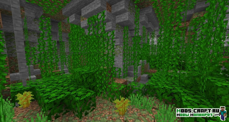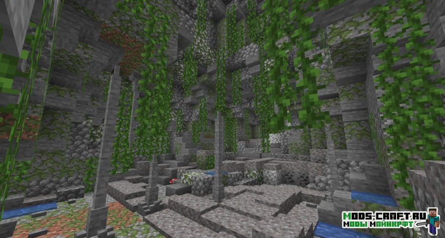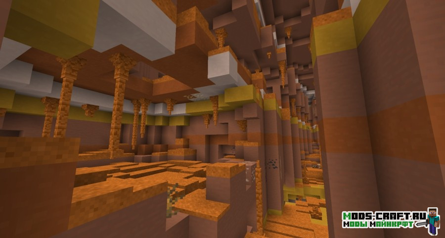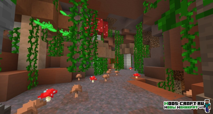 Subterranean Wilderness стремиться оживать ванильные пещеры, изменив их до неузнаваемости в сторону реализма и красоты. Погрузитесь в глубокие недра земли и раскройте красоту ее дикой и нетронутой, разнообразной окружающей природы и биомов. На протяжении всего вашего путешествия вы столкнетесь с холодными, чистыми и прозрачными экстерьерами ледниковых пещер; проберетесь через непроходимую, восхитительную флору влажных тропических пещер; откопаете очаровательные грибные царства пещер под грибными биомами; обнаружите множество потрясающих ярких кораллов, образовавшихся в затопленных морских пещерах и многое многое другое ждёт вашего исследования и изучения.