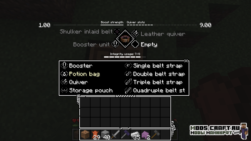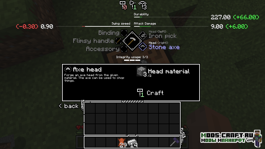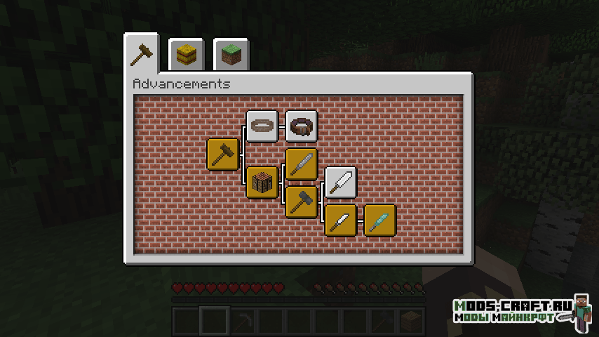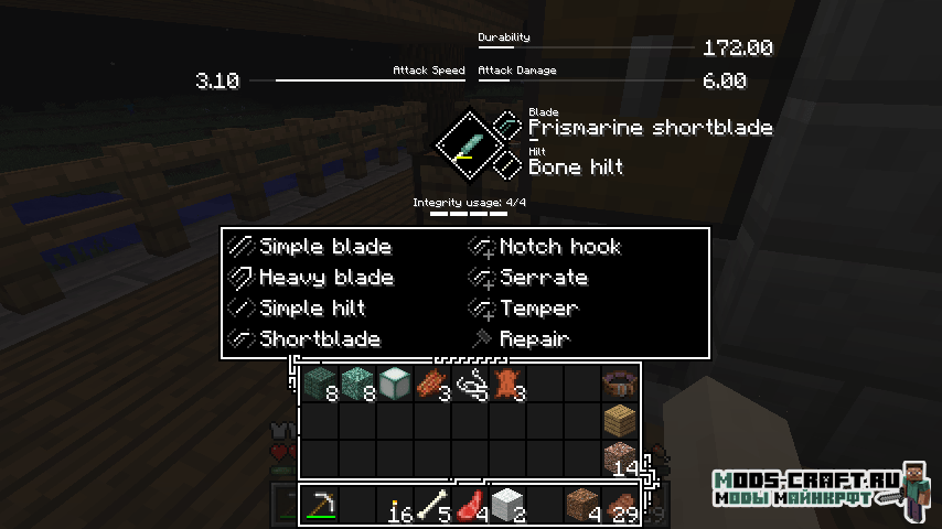 - Создайте ванильное оружие, щит или лук и поместите его на улучшенный верстак