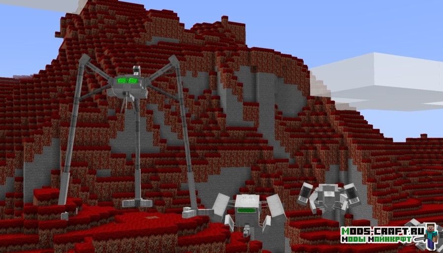 Мод The War of the Worlds позволит испытать на себе марсианское вторжение в Майнкрафт, которые могут напасть с земли, неба и воды. Объединитесь со своими друзьями и врагами, чтобы победить инопланетян, вторгшихся в ваш мир. Откройте для себя новые удивительные предметы с помощью системы исследований, создавай уникальное оружие и броню разных эпох человечестве и марсиан, чтобы спасти мир от Марсиан.