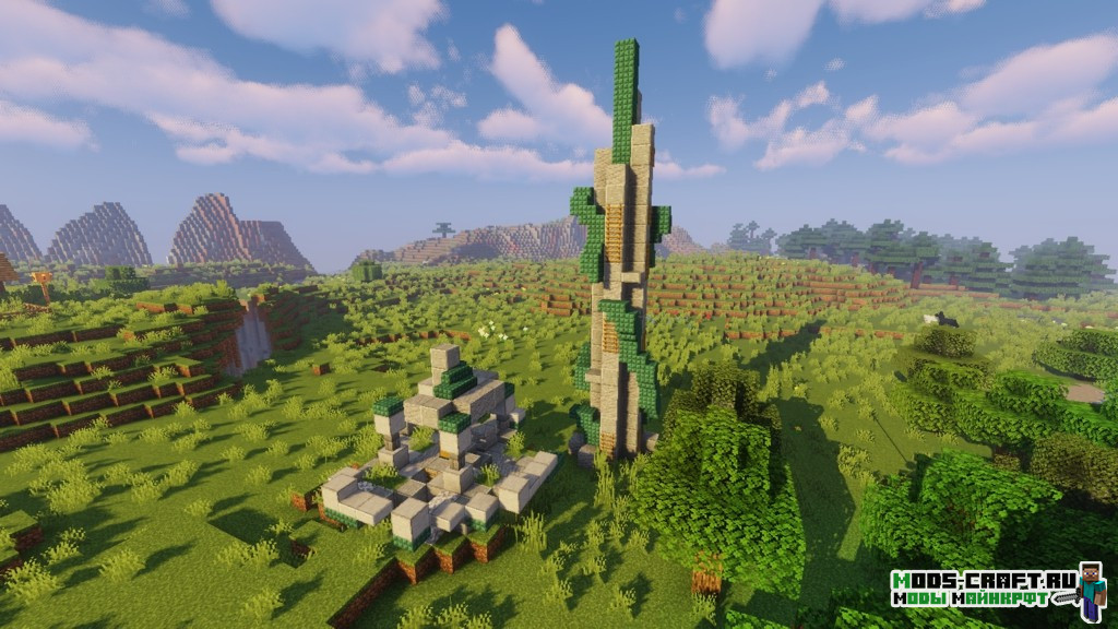 Теперь в мире Майнкрафт будут генерироваться высокие и красивые башни, на которые довольно тяжело забраться, но это стоит того — наверху ждёт хорошая награда. Мод был вдохновлён игрой The Legend Of Zelda: Breath Of The Wild.