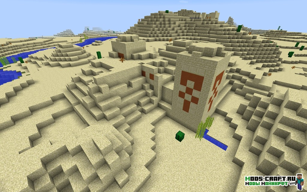 Очень интересный сид, где вы появитесь прямо перед первой пирамидой, находящейся через холм. Пойдя налево от неё можно отыскать ещё одну пирамиду, а если идти чуть правее то наткнётесь на деревню с закопанной рядом в песке пирамидой. Также если следовать на восток по координатам -700, 70, -162 то можно отыскать ещё одну деревню.