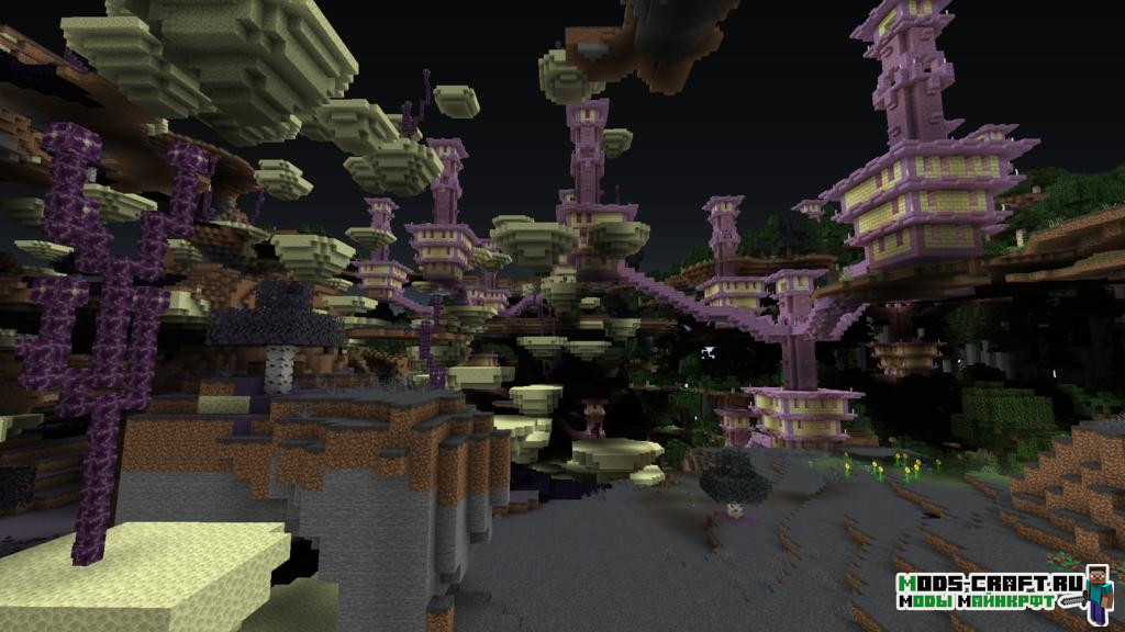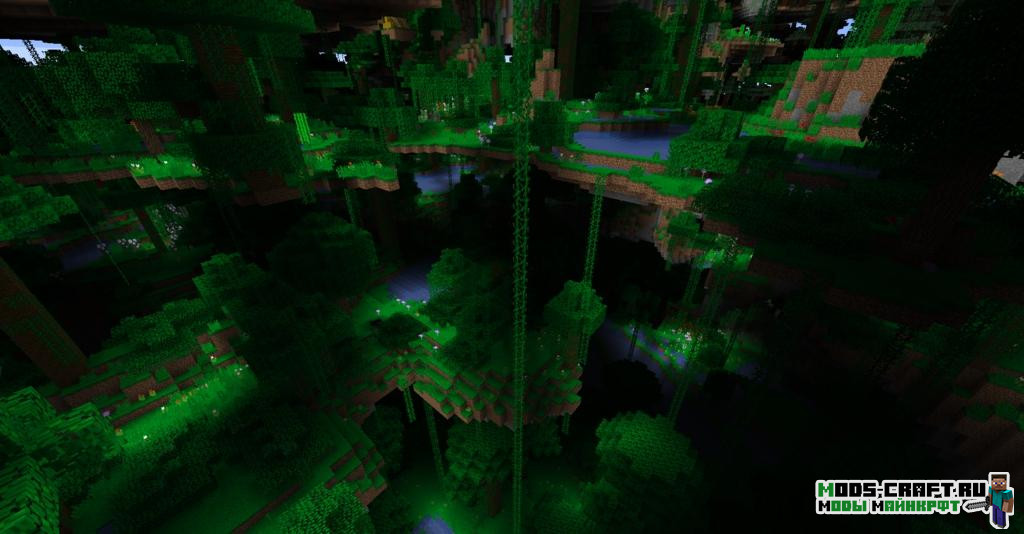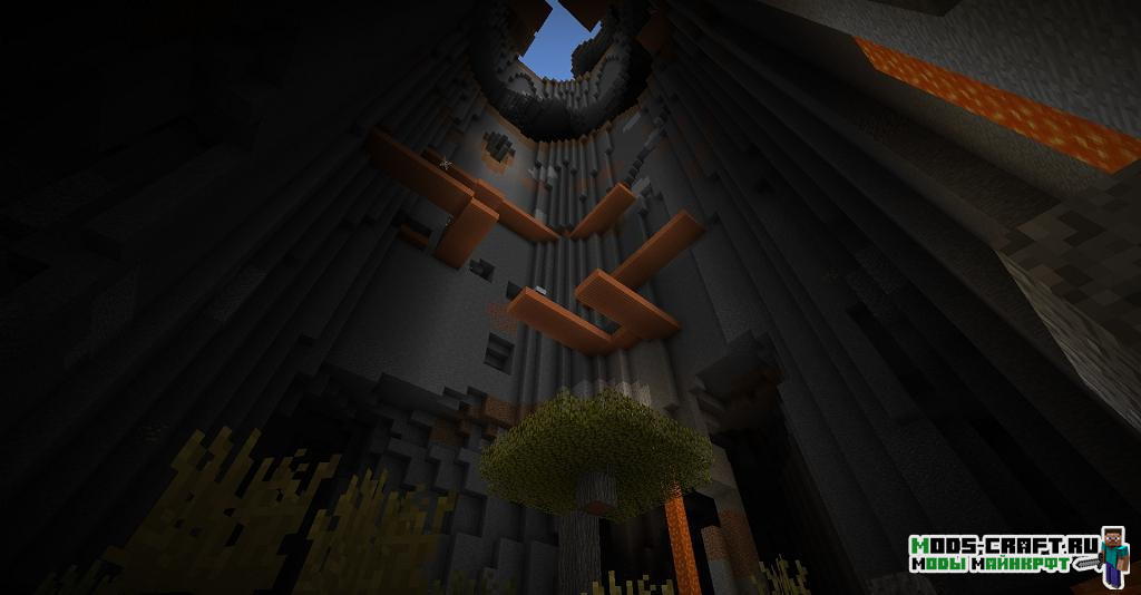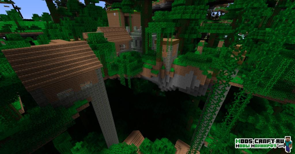 Мод добавит хардкорный и безумный мир в Майнкрафт, состоящий из разделённых слоём земли с летающими в воздухе островками. Причём все сделано в ванильном стиле и вы также сможете отыскать шахты, деревни и различные данжи, только уже в изменённом виде.