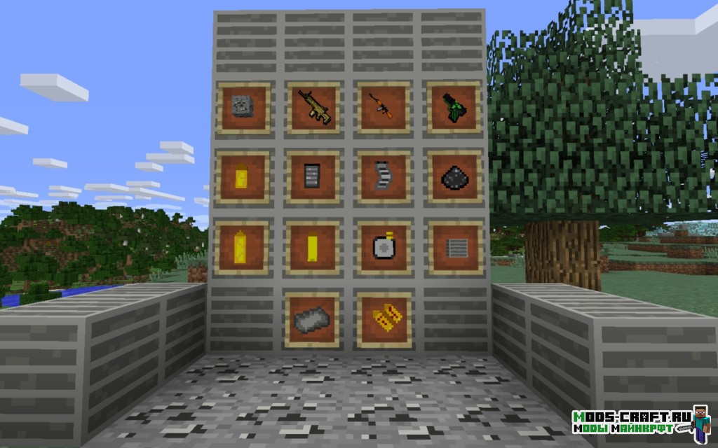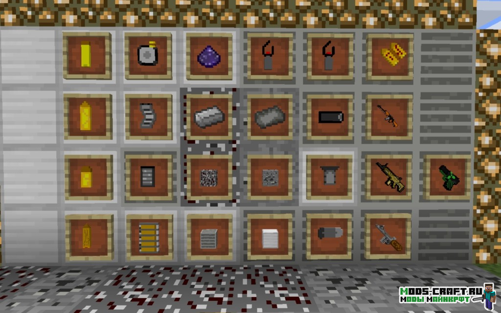 Интересный военный мод Military Workspace добавляет огнестрельное и холодное оружие, современную военную броню и нового моба — Боец S.W.A.T., который будет действовать как зомби, но стрелять в жителей из оружия. Оружие можно создавать с помощью новых руд довольно легко.